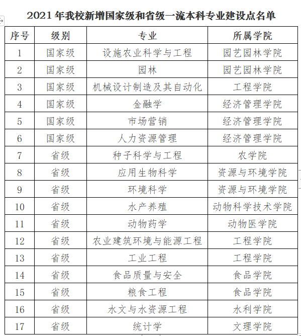 日前,教育部发布了《教育部办公厅关于公布2021年度国家级和省级一流本科专业建设点名单的通知》(教高厅函〔2022〕14号),东北农业大学金融学、机械设计制造及其自动化、设施农业科学与工程、园林、市场营销和人力资源管理6个专业获批2021年度国家级一流本科专业建设点,统计学、水文与水资源工程、农业建筑环境与能源工程、环境科学、食品质量与安全、粮食工程、应用生物科学、水产养殖、工业工程、种子科学与工程、动物药学11个专业获批2021年度省级一流本科专业建设点。自2019年教育部启动一流本科专业建设“双万计划”以来,共获批一流本科专业建设点43个,其中国家级24个,省级19个,占学校目前招生专业总数64%。