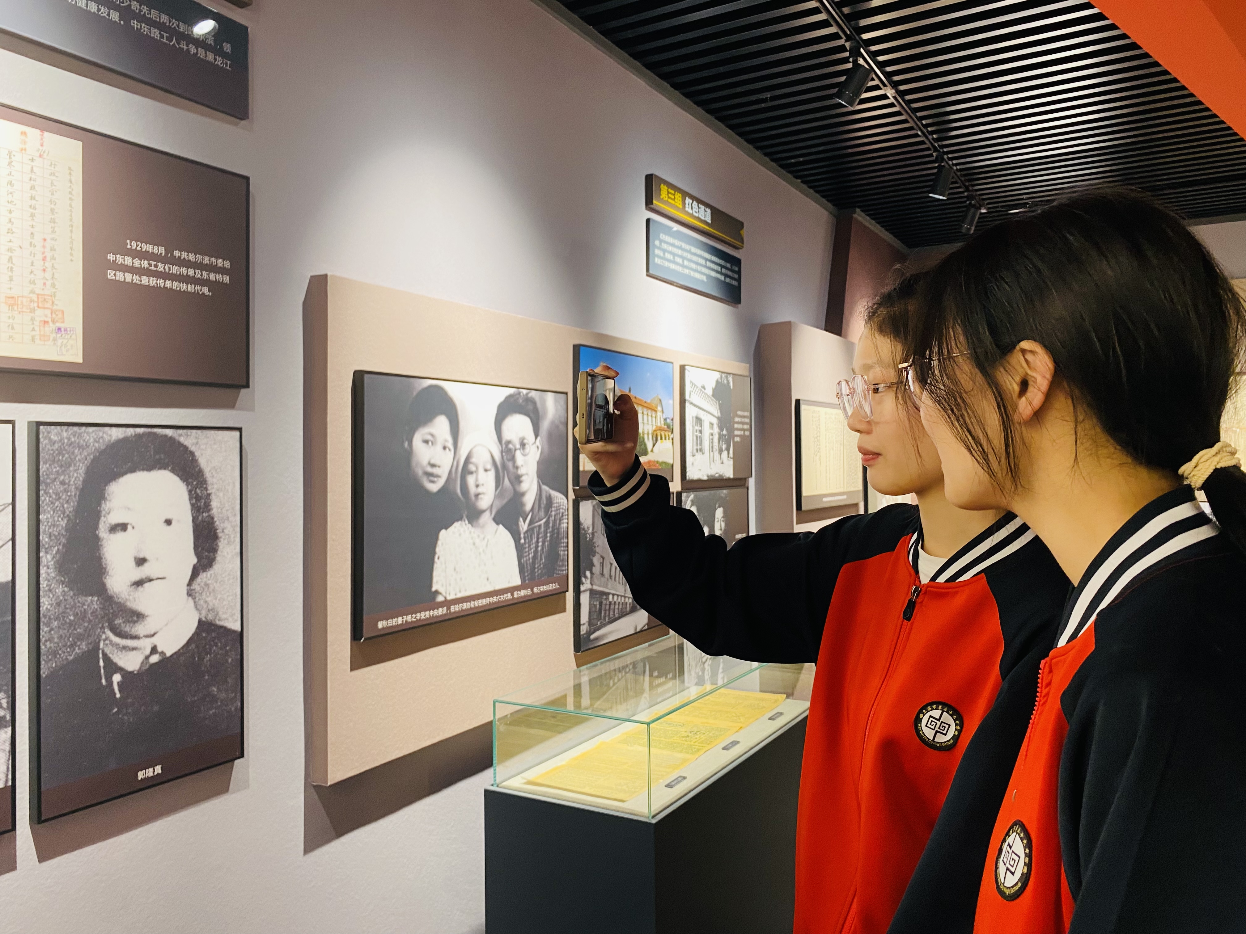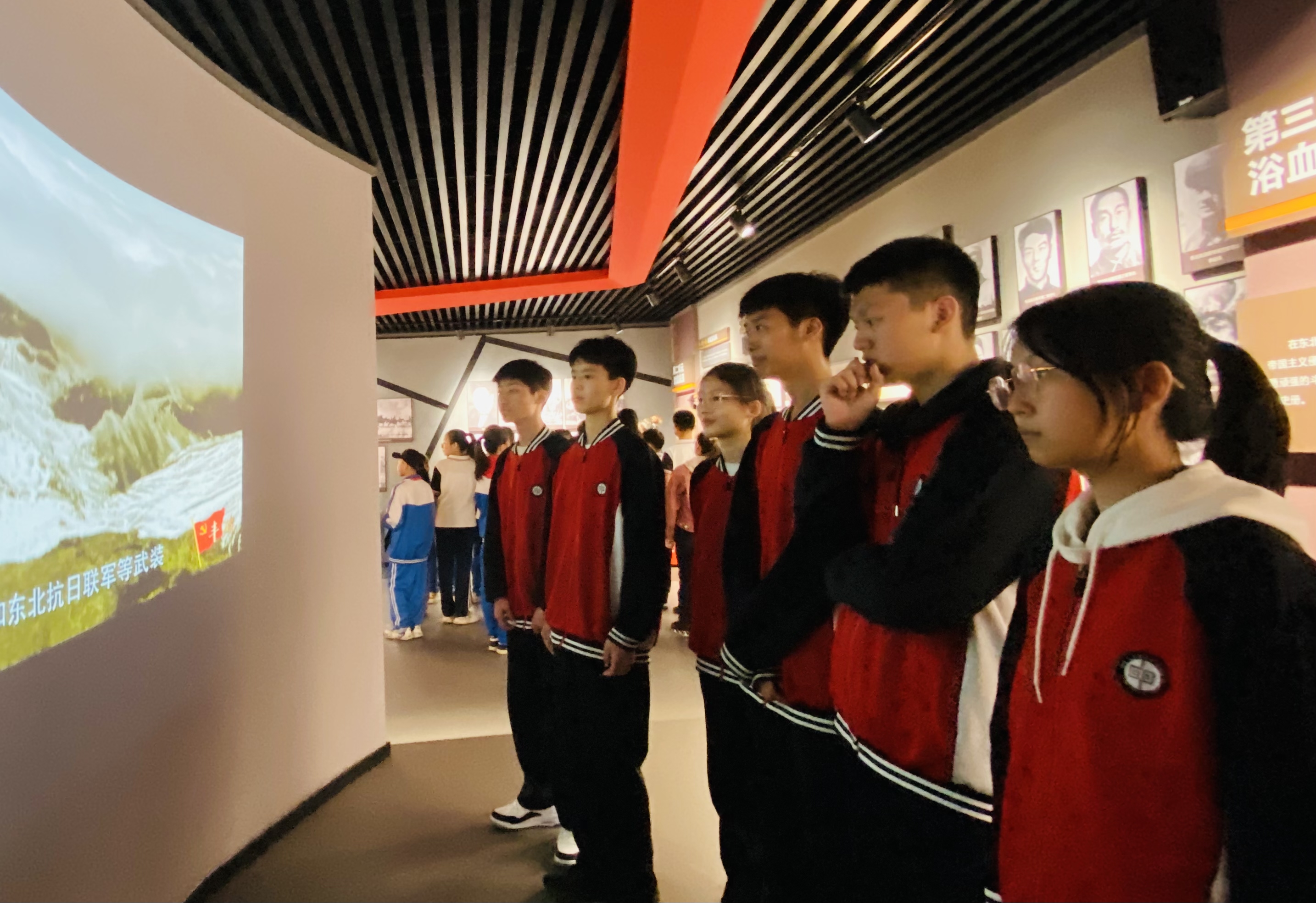 在《风展红旗》展厅,师生们共同回顾了百年来在中国共产党的领导下,龙江人民奋发图强、艰苦奋斗,历经风雨后不断取得胜利的光辉历程。