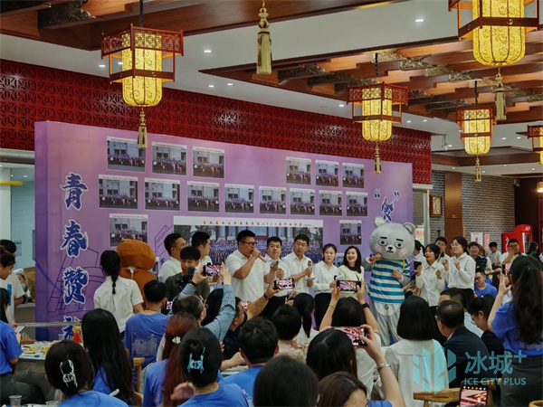 记者走进久负盛名的东农饺子园,东北农业大学食品学院正在举行以“青春赞礼 ‘食’光长青”的毕业季“上车饺子”活动。一个巨型蛋糕上,主题概念的喷涂画和主题寄语赫然明了。正在参加活动的老师们将亲手制作的蛋糕切分送给毕业生,并为他们送上美好祝福。
