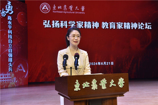 6月20日上午,东北农业大学2024年度弘扬科学家精神、教育家精神论坛在学校音乐厅隆重举行。校党委书记李长生,校长付强,副校长孙占峰、刘竹青、陈庆山、姜毓君出席论坛。论坛由艺术学院副院长郭弘主持。