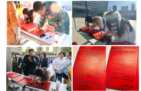 党委统战部在活动现场精心搭建了“石榴花开结同心 携手共筑中国梦——中秋节·团结情”打卡拍照区,画面设计融合了中秋节作为中国四大传统节日的传说故事和赏月吃月饼的风俗元素,突出了中华民族一家亲、“石榴花开结同心 携手共筑中国梦”等主题。在活动现场,统战部为游园师生们准备了汉服、满族、回族、维吾尔族、蒙古族、白族、壮族、达斡尔族、苗族、朝鲜族、土家族等10余种各民族服饰30余件,供大家试穿拍照,体验丰富多彩的民族风。学校动物科学技术学院的20余名少数民族学生身着民族服饰来到活动现场游园留念,主动帮助工作人员为大家服务,现场指导大家民族服装怎么穿、民族配饰怎么戴,为大家讲解民族服饰文化故事,宣传我国多民族文化的独特魅力。学校食品学院的少数民族学生盛装出席,带来了对2024级新生的加油标语,展示了东农食品学院民族团结进步的风采。