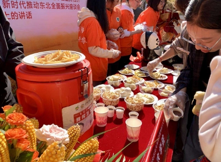 谷丰金苑——五谷农物体验区以农学院各作物品种为原材料,制作了大豆冰激凌、豆浆、薯条、爆米花等食品,受到了前来观展的同学们的喜爱。“这个豆浆跟外面卖的比起来味道更香醇,大豆冰激凌也很好吃。”动物医学学院的顾同学边说边向记者展示在活动现场领取到的食品。