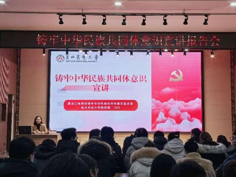 为深入贯彻落实习近平总书记关于加强和改进民族工作的重要思想,引导高校师生牢固树立中华民族共同体意识,扎实推进学校民族团结进步工作,按照省委教育工委和省民族宗教事务委员会工作要求,12月18日下午,东北农业大学在音乐厅109报告厅举办铸牢中华民族共同体意识宣讲报告会。省高校铸牢中华民族共同体意识宣讲团成员、学校党委统战部副部长冯丹进行宣讲,统战部全体工作人员、学校全体正科级及以下辅导员100余人参加会议。