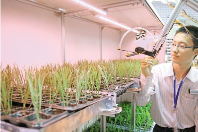 14日,在第十三届挑战杯黑龙江省大学生课外学术科技作品竞赛上,由东北农业大学本科生研发的智能育秧管理平台吸引了大家的目光。据了解,这台基于植物工厂的智能育秧系统由机器人管理,可自动控制培育秧苗所需要的光照、温度、湿度等指标,并进行浇水、施肥等日常护理,实现了育秧的规模化和标准化,同时也最大限度地节约人手、降低了劳动强度。图为大学生在调试智能育秧系统。本报记者 苏强摄