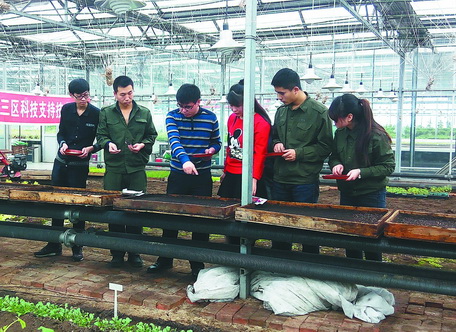 刘在民用两天时间解决了种植户的难题后,又匆匆赶回学校的试验田,他还要忙着移植冰晶菜。他告诉记者,冰晶菜源自非洲,我国南方一些省份已栽培成功,但在北方一直未能突破栽培难题。目前,他已在育苗和种植上取得成功,准备带着刚刚培育出来的冰晶菜苗再去兴十四村。“当务之急是培训好村里的技术人员,让他们熟练掌握栽培技术,让冰晶菜成为当地新的经济增长点。”刘在民说。