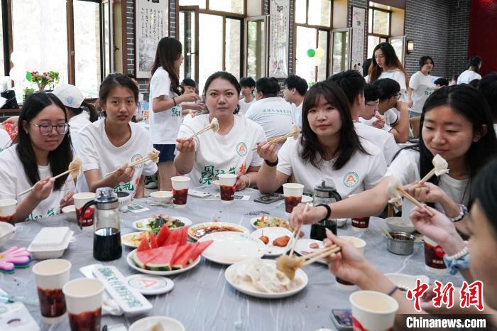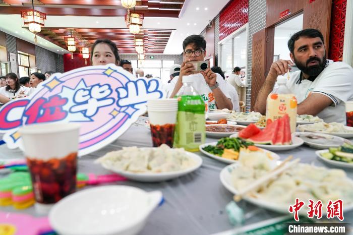 6月17日,黑龙江哈尔滨,东北农业大学国际文化教育学院毕业生品尝饺子。近日,东北农业大学为毕业生准备了14万个“上车饺子”欢送毕业生踏上人生新旅程。据了解,东北农业大学连续11年在毕业季为毕业生准备免费饺子,希望毕业生前程似锦。