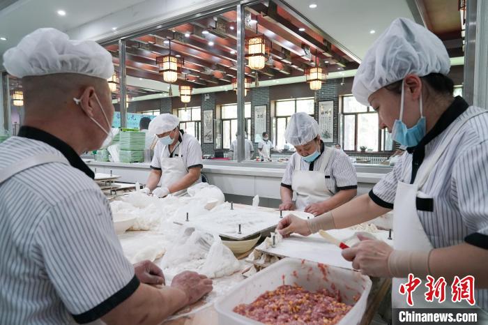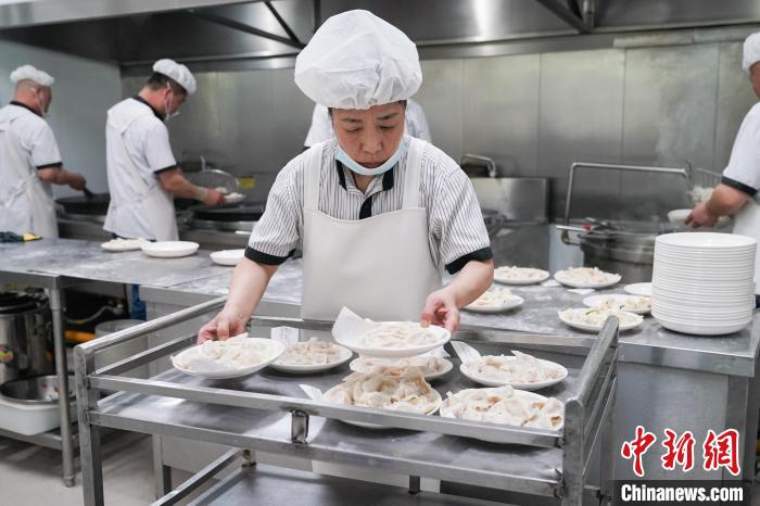 6月17日,黑龙江哈尔滨,东北农业大学食堂员工准备饺子。近日,东北农业大学为毕业生准备了14万个“上车饺子”欢送毕业生踏上人生新旅程。据了解,东北农业大学连续11年在毕业季为毕业生准备免费饺子,希望毕业生前程似锦。