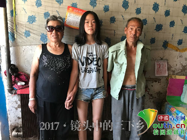实践队员还为孩子们策划了一封家书的活动,随着《时间都去哪了》背景音乐的播放,孩子们在信纸上写下对亲人的思念,和拍摄好的照片放在一起,由队员为孩子们邮寄到他们爱的人身边…… “我的愿望只是想要一张全家福” 实践队按照孩子们在填写调查问卷时留下的家庭住址,走访了每一个孩子的家。 在刚到达雯雯(化名)家的时候,她的爷爷奶奶就热情的迎了出来,奶奶刚刚做完白内障手术,还带着墨镜,家里的经济状况也更加拮据了。 实践队员得知雯雯的数学和英语比较差,特地准备了一些教学材料,在实践的两个月时间里定期为雯雯进行辅导,帮助雯雯养成良好的学习习惯。 在实践即将结束的时候,实践队员问雯雯有什么愿望想要实现,雯雯的回答却是令队员既震惊又心疼。 雯雯说“姐姐,我没有什么太大的愿望,你们能我拍一张照片吗,我和爷爷奶奶还没有一起照过相。”