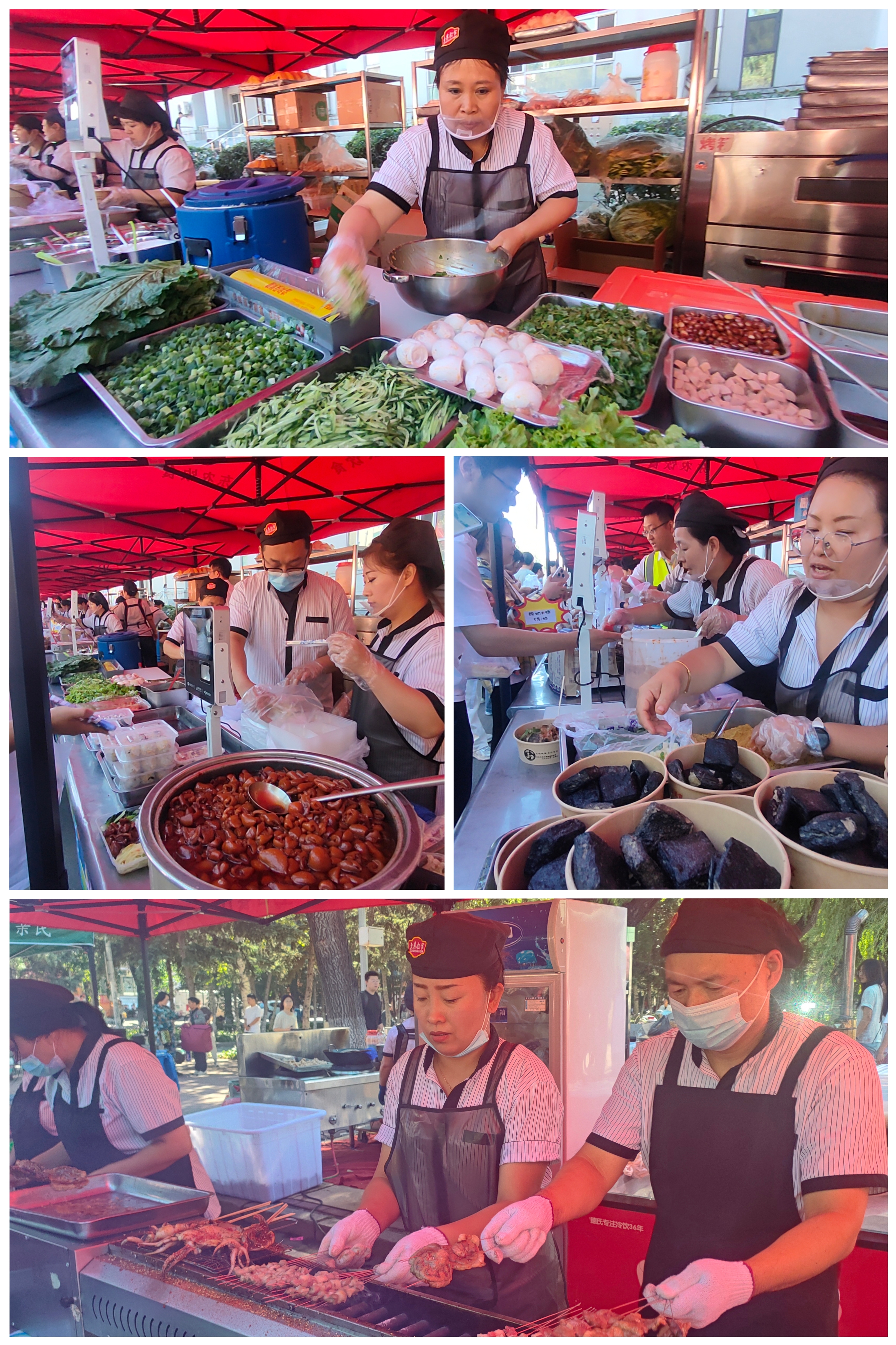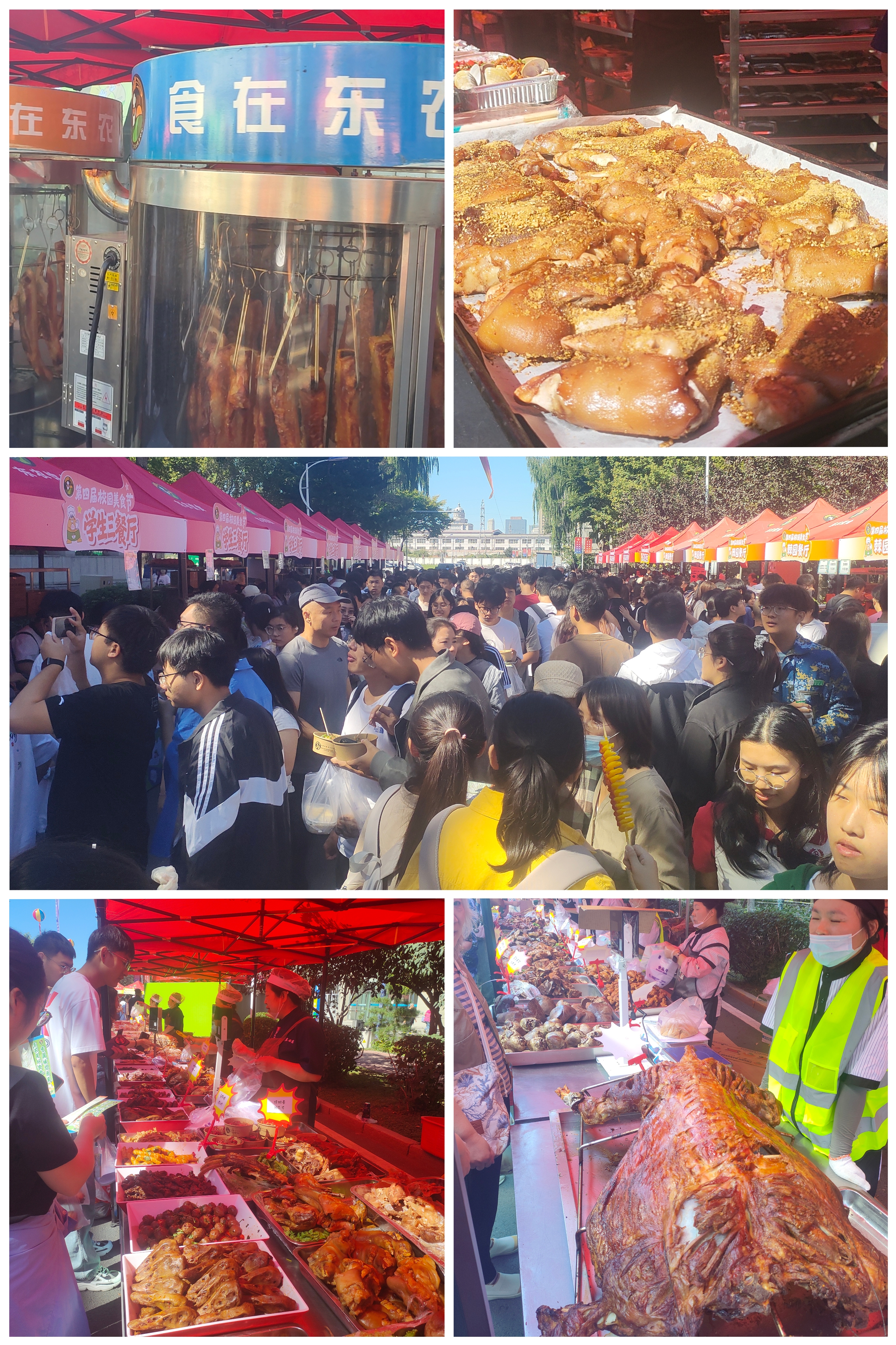 “今天吃了烤全羊,明天必须来尝东坡肉!”同学们手里餐盒摞着餐盘,穿梭在各个摊位前,有的捧着大串边走边啃,有的端着水饺边吃边排队等水爆肚,还有人举着手机对着美食疯狂拍摄,“拍给外地同学看,肯定馋得他课都不想上了!”