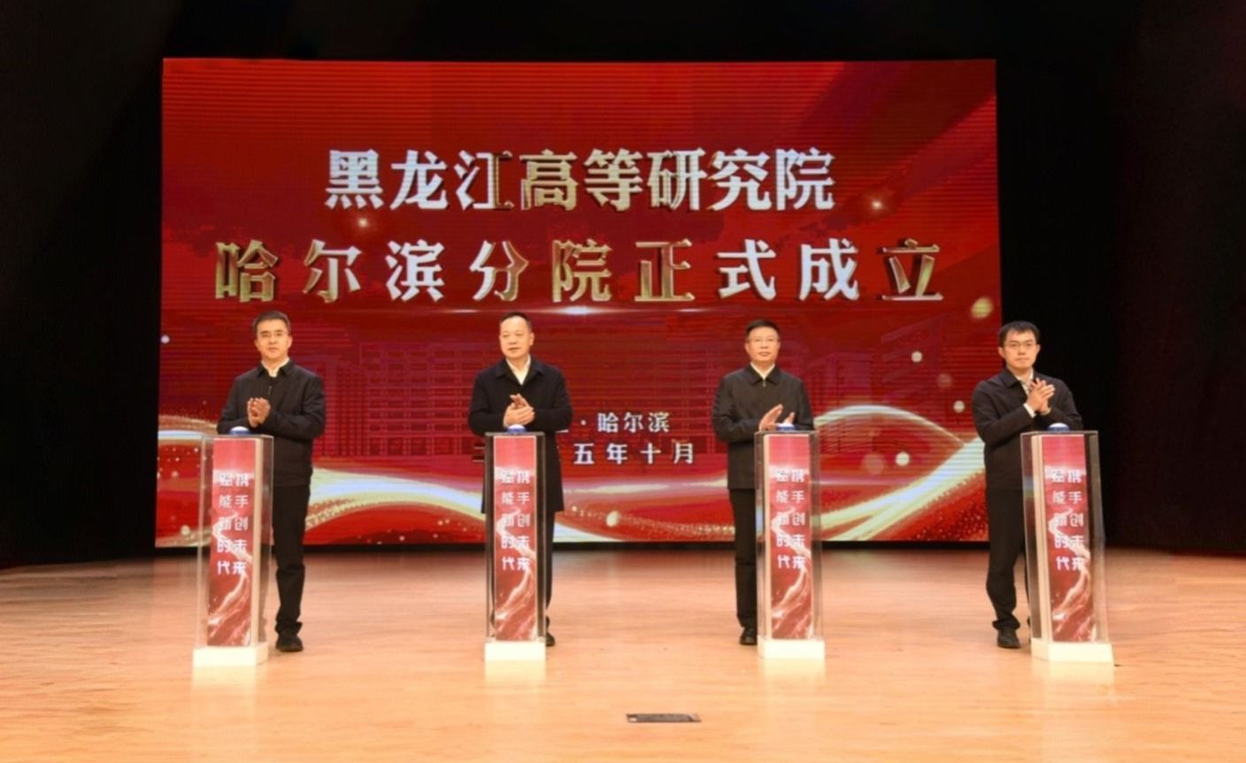 在与会代表的共同见证下,王震、刘广宇、刘竹青、李均共同为黑龙江高等研究院哈尔滨分院揭牌,标志着哈尔滨分院正式启动运行。