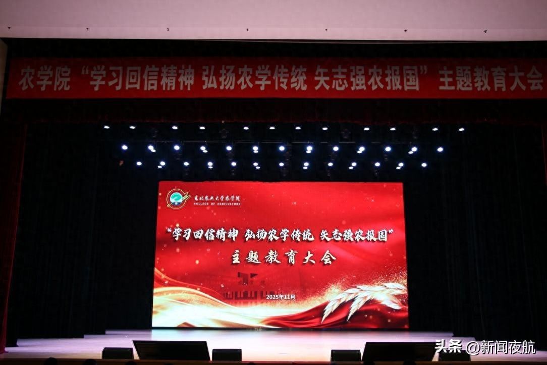 据悉,东北农业大学农学院将进一步巩固“学习回信精神”主题教育成果,深入阐释其时代内涵与引领价值,充分依托学院“五老”力量与杰出校友资源,不断拓展育人格局、厚植办学底蕴,将理想信念教育有机融入新时代农科人才培养全过程,引导广大学生“把论文写在祖国大地上”,以奋进之我、青春之我,为加速建设农业强国、推进中国式现代化作出新的贡献。