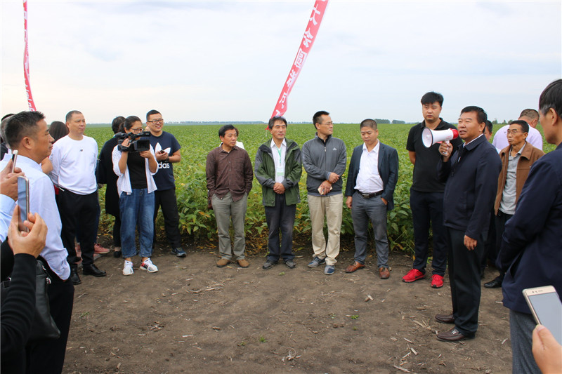 五大连池市副市长王元武现场介绍农业绿色发展示范区暨大豆万亩高产攻关示范方基地