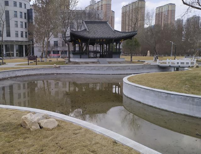 人工池的水面倒映着观景亭,非常的漂亮。龙头新闻记者 张涛 摄