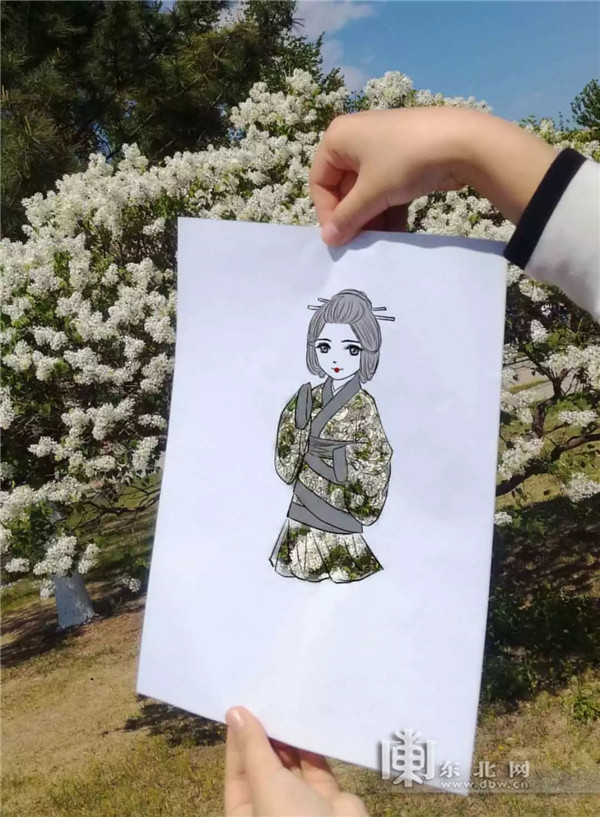 东北网5月10日讯 (记者 姜姗姗) 五月的校园里繁花盛锦,交相竟开,花的红,树的绿,天的蓝,映衬校园一片好风光……近日,东北农业大学的大学生们用镂空剪纸的方式,别出心裁的将美景变成了绘画人物的衣服,一起去看看吧……