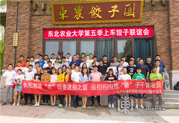 东北网6月13日讯(王勇 豆志滔 记者 姜姗姗) 又是一年毕业季,12日中午,东北农业大学第五季上车饺子活动正式开始了,东农饺子园现场气氛热烈,动物医学学院、电气与信息学院作为第一天开展活动的两个学院,学院全体辅导员老师同毕业生欢聚一堂。