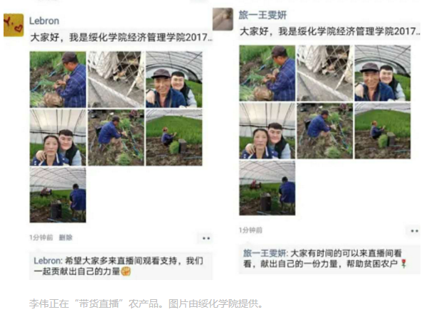 “接下来,我给大家介绍黑木耳的好伴侣——‘笨蛋’,笨蛋炒木耳,越吃越聪明。”这是绥化学院经济管理学院17级电子商务专业学生李伟走进蔬菜大棚进行自己的“直播带货”的日常。