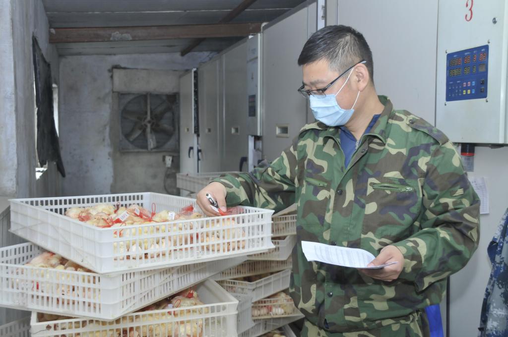 动物科学技术学院办公室党支部现有党员10人,自2016年成立以来,支部始终以服务育人为中心,努力建设成为服务教师、服务学生的创新型党支部。这几天,党员突击队队员清晨6点准时在学校集合出发,驱车40多公里,来到了阿城区哈尔滨山河禽业孵化场。这已经是党员突击队的队员今年第四次来到这里,协助学院的家禽遗传育种团队完成出雏任务。从孵化器中将鸡雏推出来,按照序号摆盘,剪袋计数,分辨雌雄,根据家系分配翅号,给每只小鸡佩戴翅号,称重、记录,为小鸡注射疫苗,最后送回养殖基地,繁琐的工作程序,炎热的天气,突击队的队员们全天佩戴口罩,一干就是一天。目前,党员突击队已协助家禽遗传育种团队累计转移运输种鸡2000多只,出雏15000多只,极大的缓解了疫情期间因人力不足而给科研工作带来的压力,有效推动了团队的科研进度。