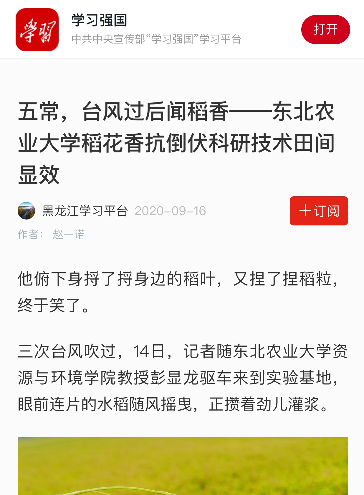 他告诉记者,今年水稻迎来丰收,得益于彭教授研发的优化管理技术。自2018年东北农业大学与哈尔滨市农科院共建“双创”基地后,彭教授就定期带领研究生驻扎基地开展稻花香抗倒伏研究工作,经过两年实践,又扛过台风“三连击”,这技术算是成了。