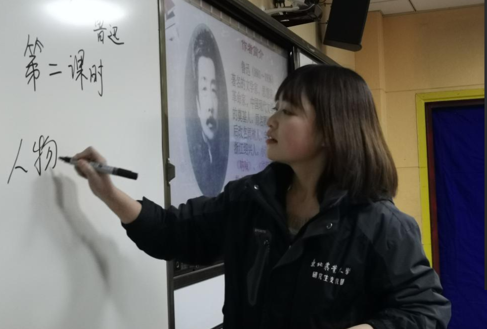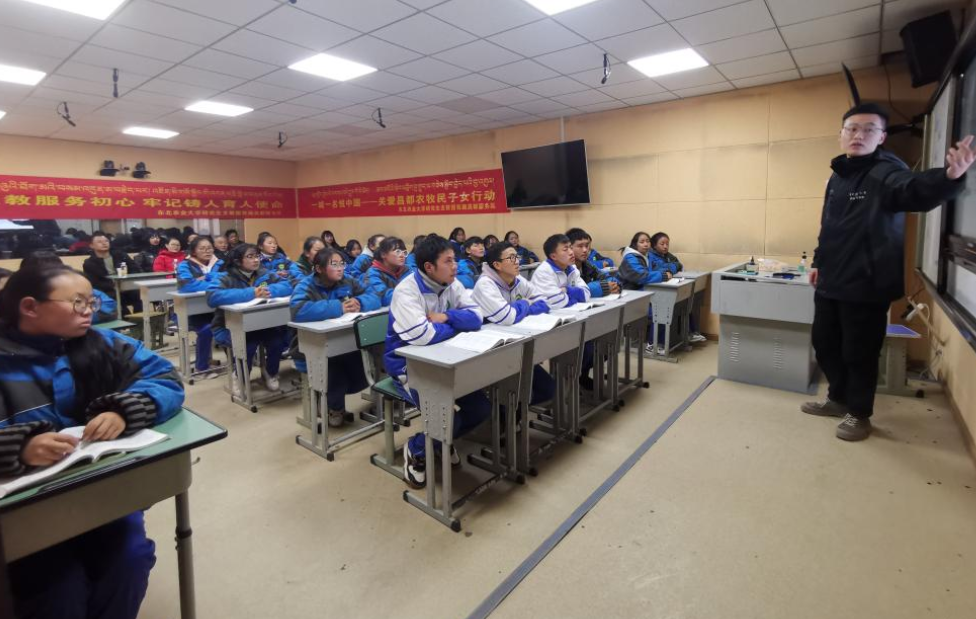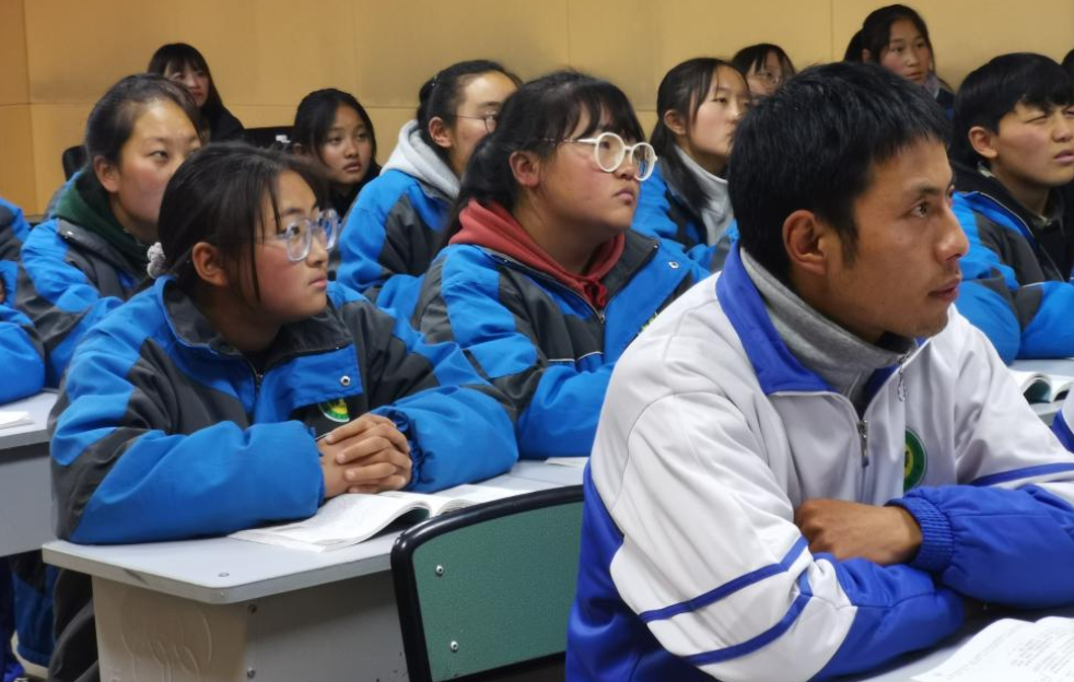 图片说明:孙登林一行走进高二年级14班课堂,现场听支教团队员讲课(图片由东北农业大学提供)