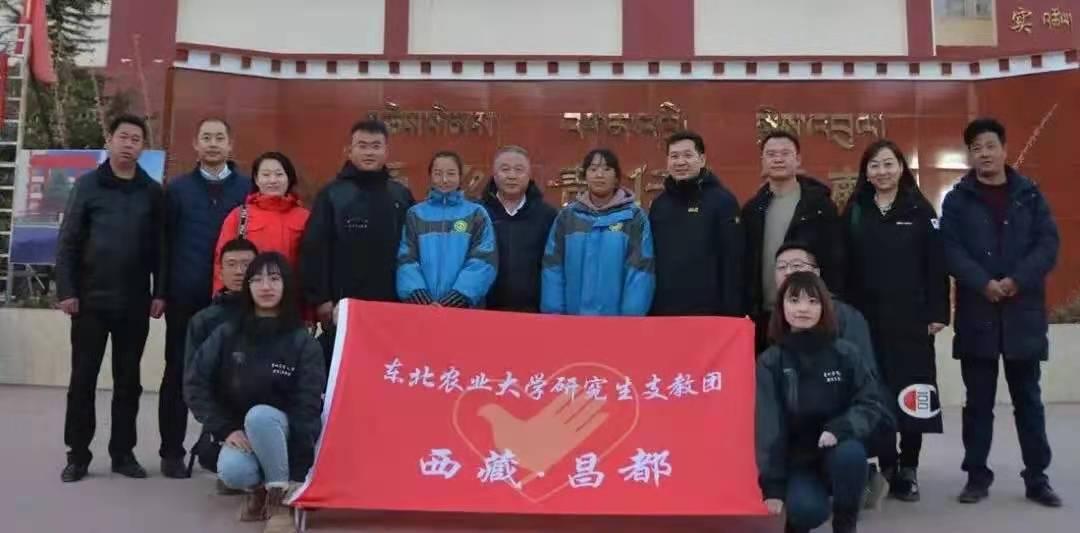 东北农业大学研究生支教团自2013年组建以来,大力弘扬“奉献、友爱、互助、进步”的志愿精神,秉承“明德亲民,博学笃行”的校训,弘扬“艰苦奋斗,自强不息”的东农精神,现已向贵州省黔南州龙里县、新疆维吾尔自治区福海县、西藏自治区昌都市选派研支团志愿者共计91人。2018年加入黑龙江省兴边富民计划,选派支教团志愿者11人。他们有的横跨几千公里的国土,翻山越岭,从中国地图的东北角到西南、西北角,带着爱扎根西部沃土,成为了西部志愿者。有的毕业后选择留在家乡“振兴东北,从我做起”,在三尺讲台上传播知识和力量。他们用实际行动诠释着新时代青年的坚定选择。