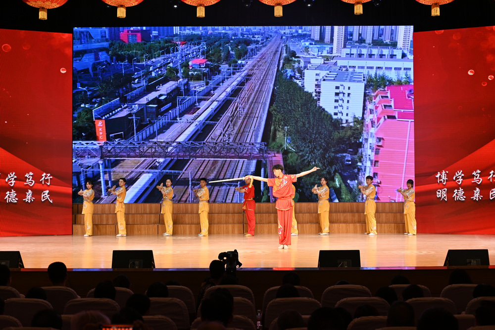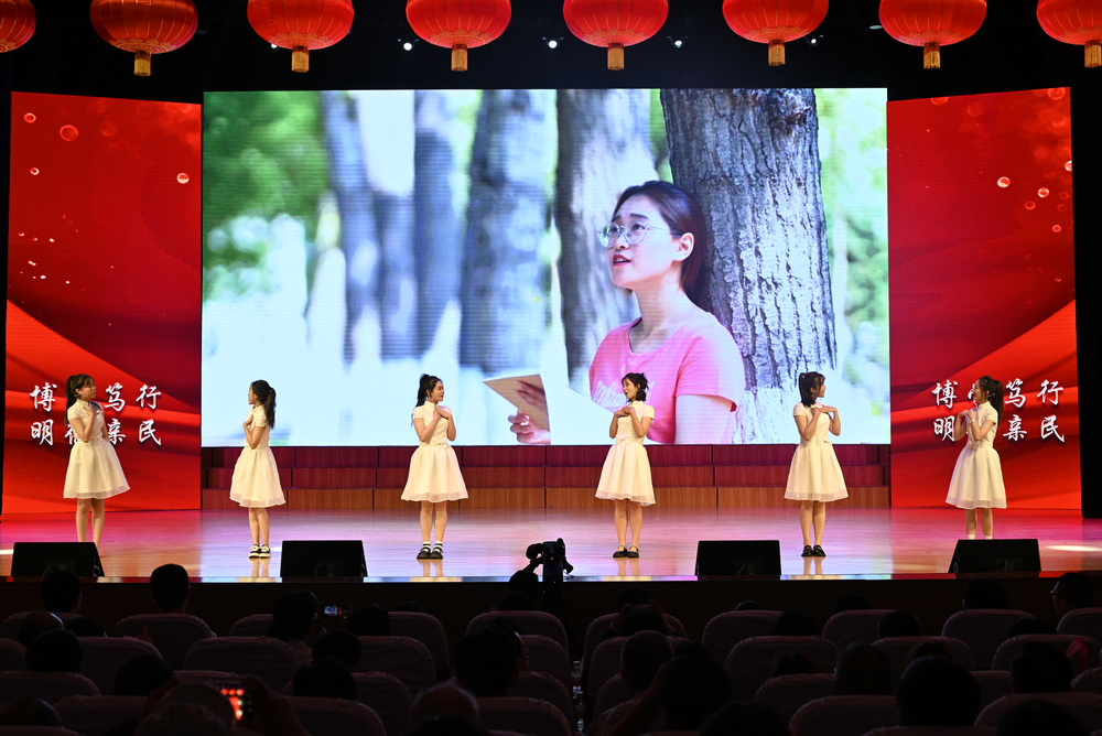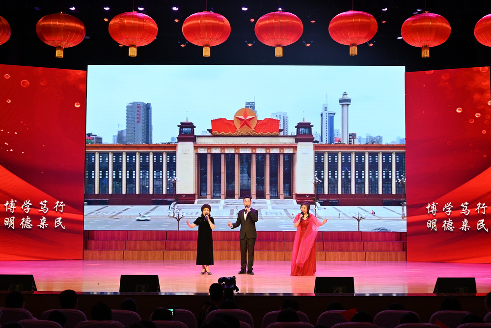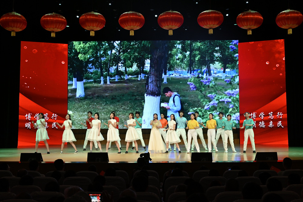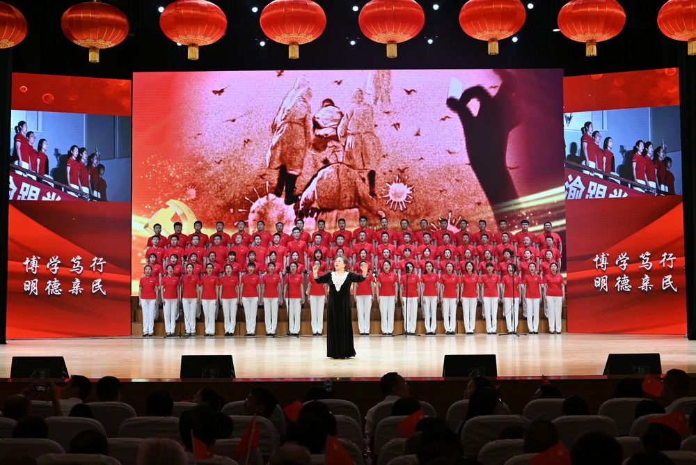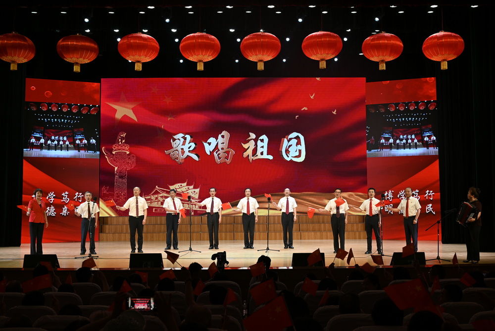 “五星红旗迎风飘扬,胜利歌声多么响亮,歌唱我们亲爱的祖国.......”全体校领导精神抖擞,歌声嘹亮,斗志昂扬,用一曲合唱《歌唱祖国》真情告白祖国,表达了对伟大的党的无限忠诚,抒发了对祖国母亲的无限热爱和衷心祝福,展现了以史为鉴,开创未来,启航新征程的坚定决心和信心,引发了全场党员、师生的强烈共鸣。