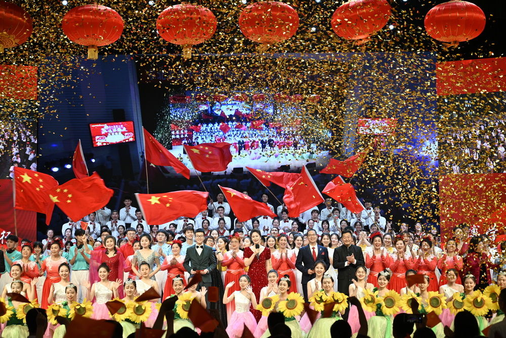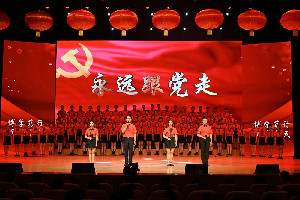 坚定不移听党话,矢志不移跟党走。在雄壮激昂的音乐声中,全场演职人员和观众共同高唱《没有共产党就没有新中国》。在嘹亮整齐的歌声里,大家感悟中华民族的伟大光荣,感悟中国人民的伟大光荣,感悟中国共产党的伟大光荣。在铿锵有力的歌声里,大家抒发对党的无限热爱和崇敬,表达永远感党恩、听党话、跟党走的坚定决心,充分展现庆祝伟大的中国共产党百年华诞的喜悦之情!