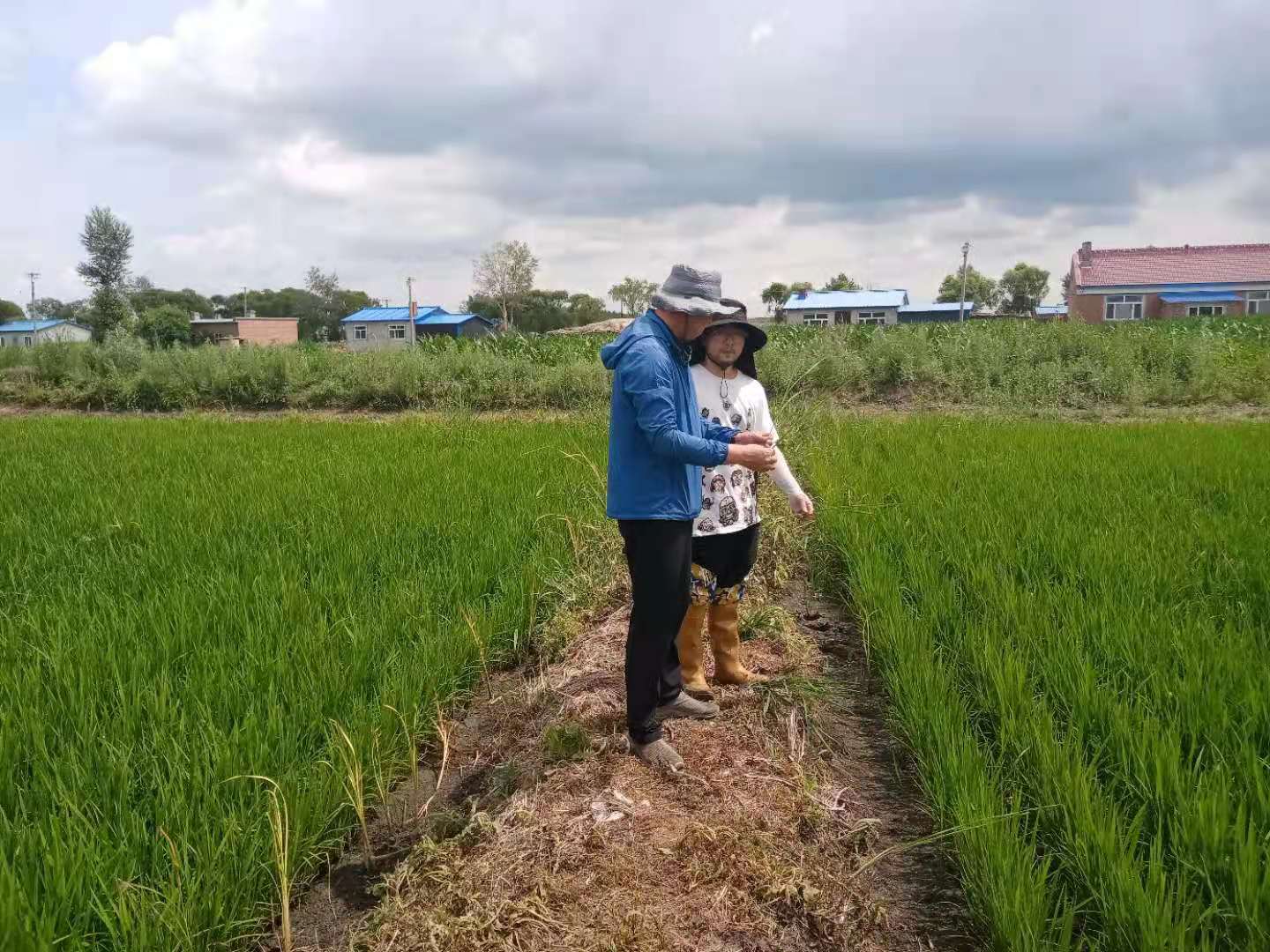 “科学适用穗肥是水稻高产的关键措施之一”,在水稻穗肥施用的关键时期,彭显龙来到绍文乡为农户送技术,“施用穗肥时水稻一般要有点落黄,而长势繁茂叶片批垂的水稻则不能施用穗肥,相反要采取灌溉措施调控水稻生长,后期酌情施肥。”培训后,彭显龙带着研究生一起来到全好村东北农业大学和省农机推广总站协同创新基地,查看示范田水稻生长情况,并根据水稻长势确定施肥时间和穗肥施用量。