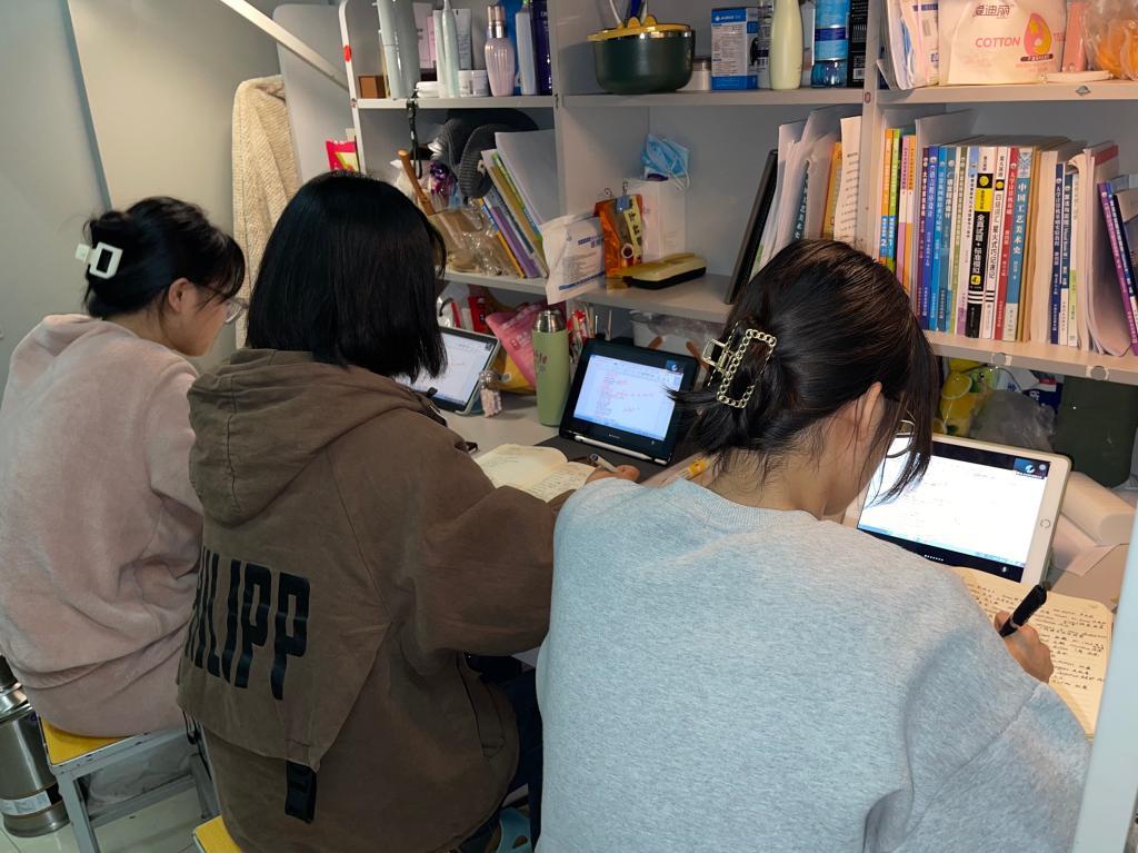 辅导员深入学生寝室检查线上授课情况。东北农业大学 供图