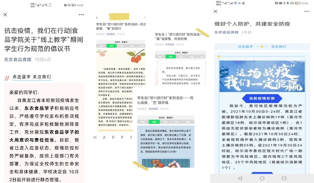 面对疫情大考,全体东农辅导员以国之大者的情怀、青春之我的担当,在“辅”上尽职责,在“导”上下功夫,全“员”守护着三万余名学生的平安健康。
