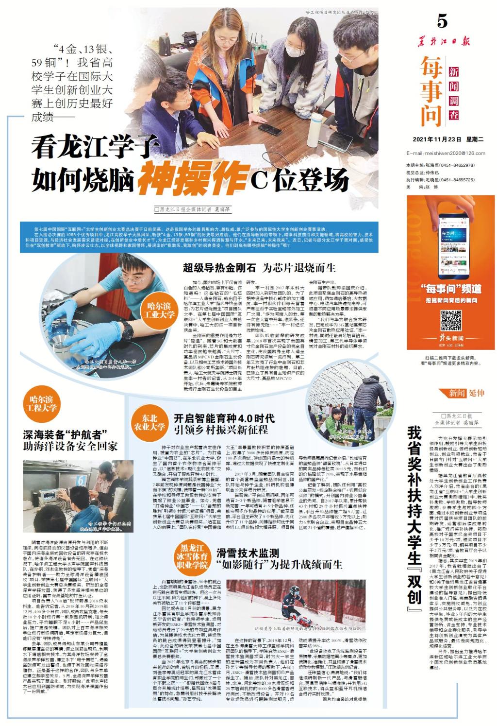 在入围总决赛的1085个优秀项目中,黑龙江高校学子大展风采,斩获“4金、13银、59铜”的历史最好成绩。他们在指导教师的带领下,瞄准科技前沿和关键领域,将高校的智力、技术和项目资源,与经济社会发展需求紧密对接,在创新创业中增长才干,为龙江经济发展和乡村振兴挥洒智慧与汗水。“未来已来,未来我来”。近日,记者与部分龙江学子面对面,感受他们在“双创教育”驱动下,胸怀凌云壮志,以全球视野和家国情怀,展现出的“我敢闯、我敢创”的飒爽英姿。他们到底有哪些烧脑“神操作”呢?