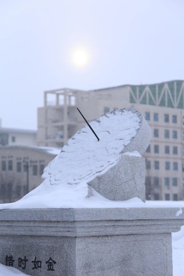 即使落雪的日晷也时时刻刻提醒同学们要惜时如金。