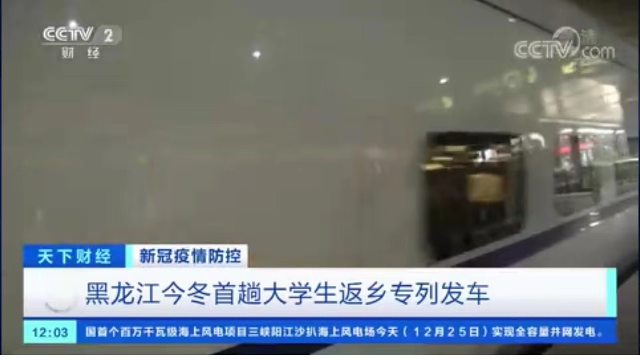 12月25日,CCTV-2《天下财经》以《新冠疫情防控 黑龙江今冬首趟大学生返乡专列发车》为题对我校进行了报道。
