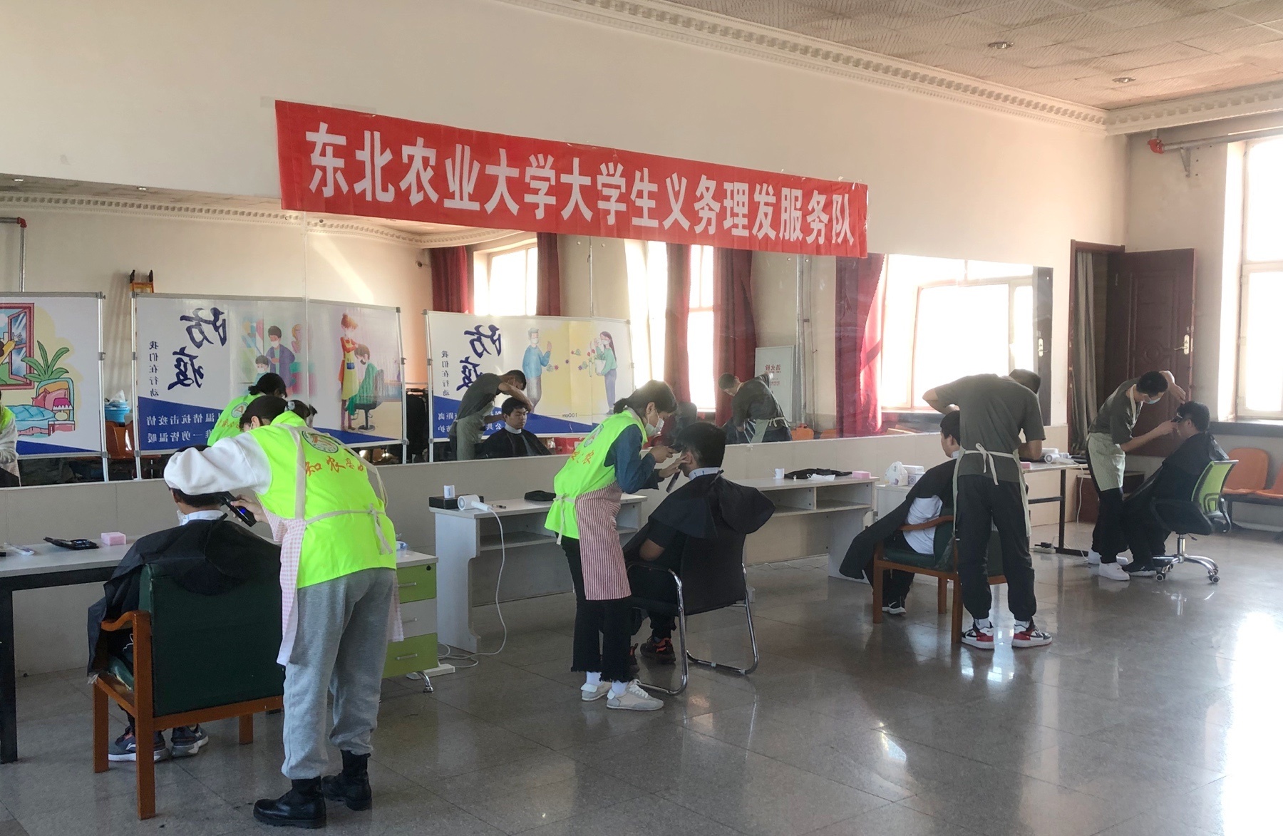 东北农业大学的大学生义务理发服务队