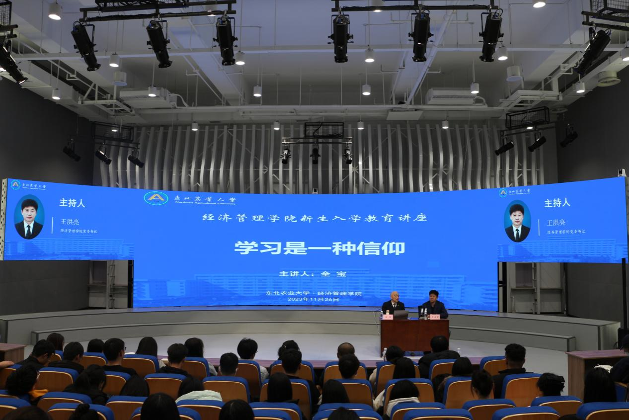 11月26日在成栋楼大数据与智能商务研究中心,全宝以《学习是一种信仰》为题作专题讲座,经济管理学院副处级辅导员李伟光、辅导员王瑞锋、张彤及大一新生代表共计170余人参加。讲座由学院党委书记王洪亮主持。