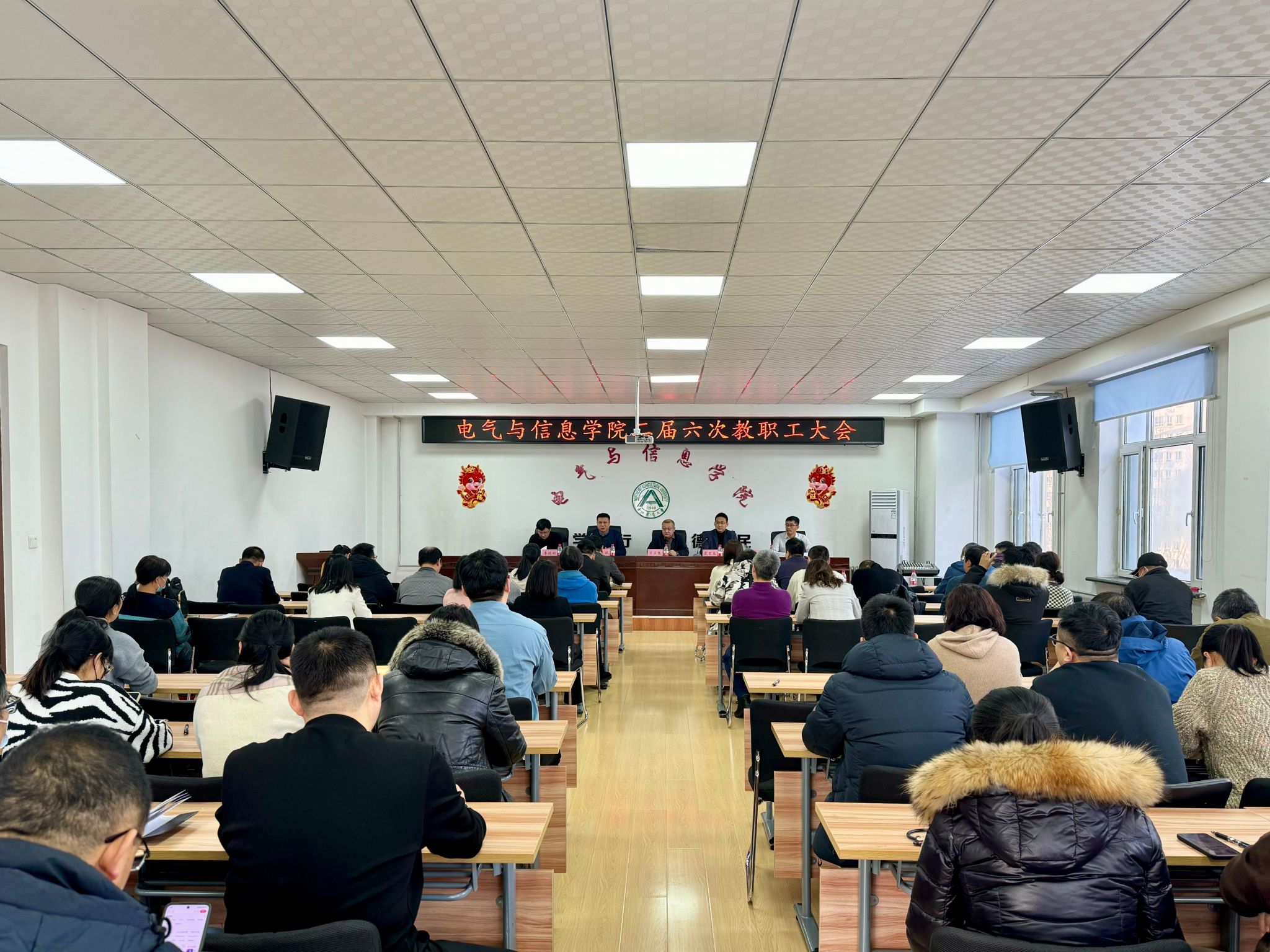 1月8日上午,电气与信息学院召开二届六次教职工大会,校工会副主席刘辉出席会议,学院领导班子成员及全体教职工参加会议。会议由学院党委副书记、工会主席汪文斌主持。