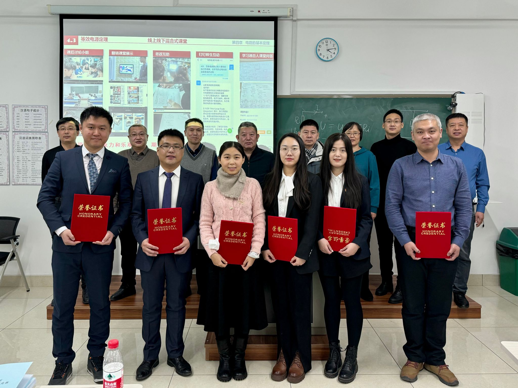 经过评委现场评分,孔庆明获得学院青年教师教学竞赛一等奖,黄博妍、曹玉莹获得二等奖,王晓晨、王文峰、刘宇博获得三等奖。学院领导班子和评委专家为获奖教师进行颁奖。