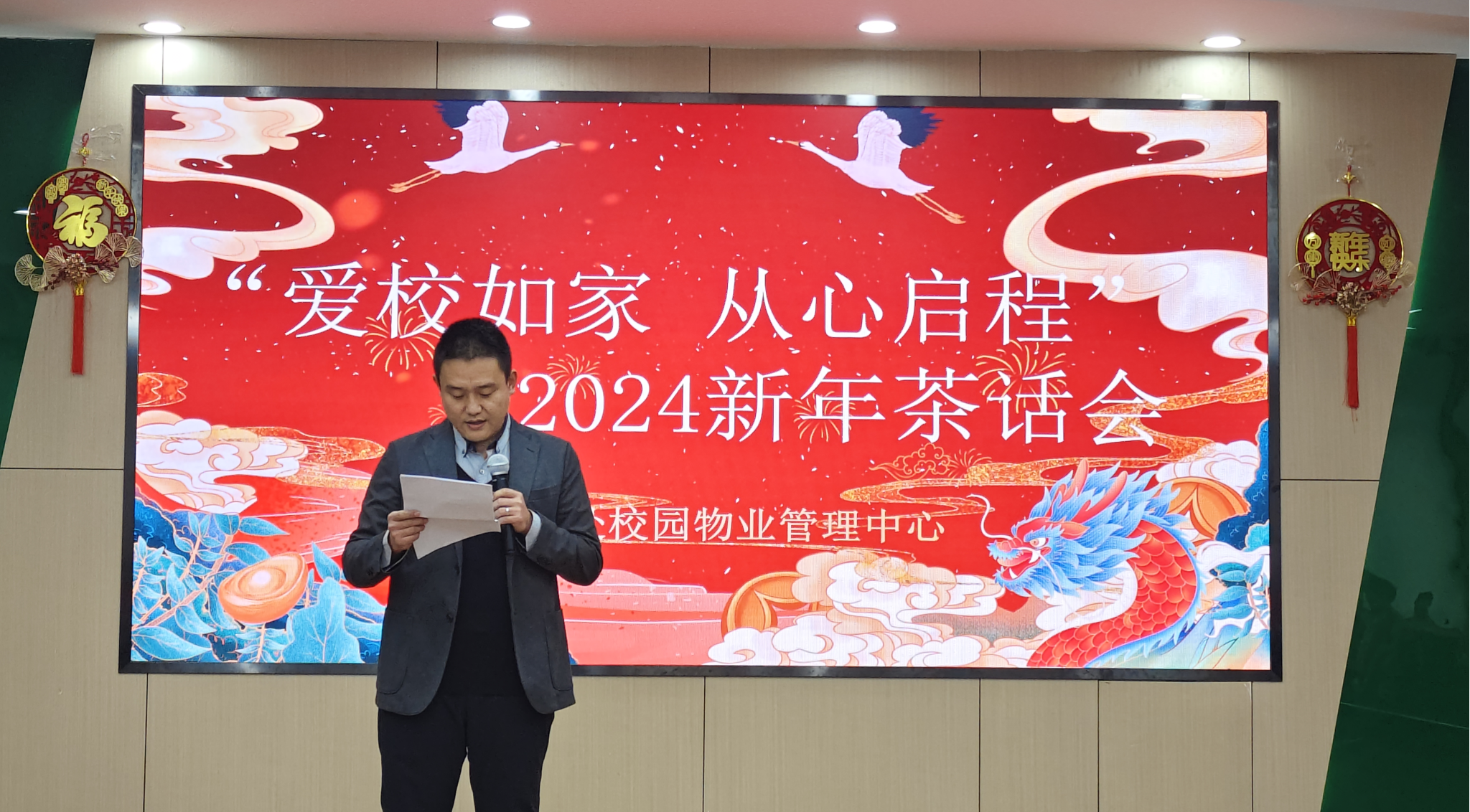 为做好2023年的工作总结与2024年的工作规划,培养工作人员“爱校如家,当好主人翁”精神,增强凝聚力和责任感。1月12日下午,校园物业管理中心举办“爱校如家,从心启程”主题新年茶话会。中心全体人员积极参与,热情响应,共同回顾2023年的工作,谋划2024年的工作。