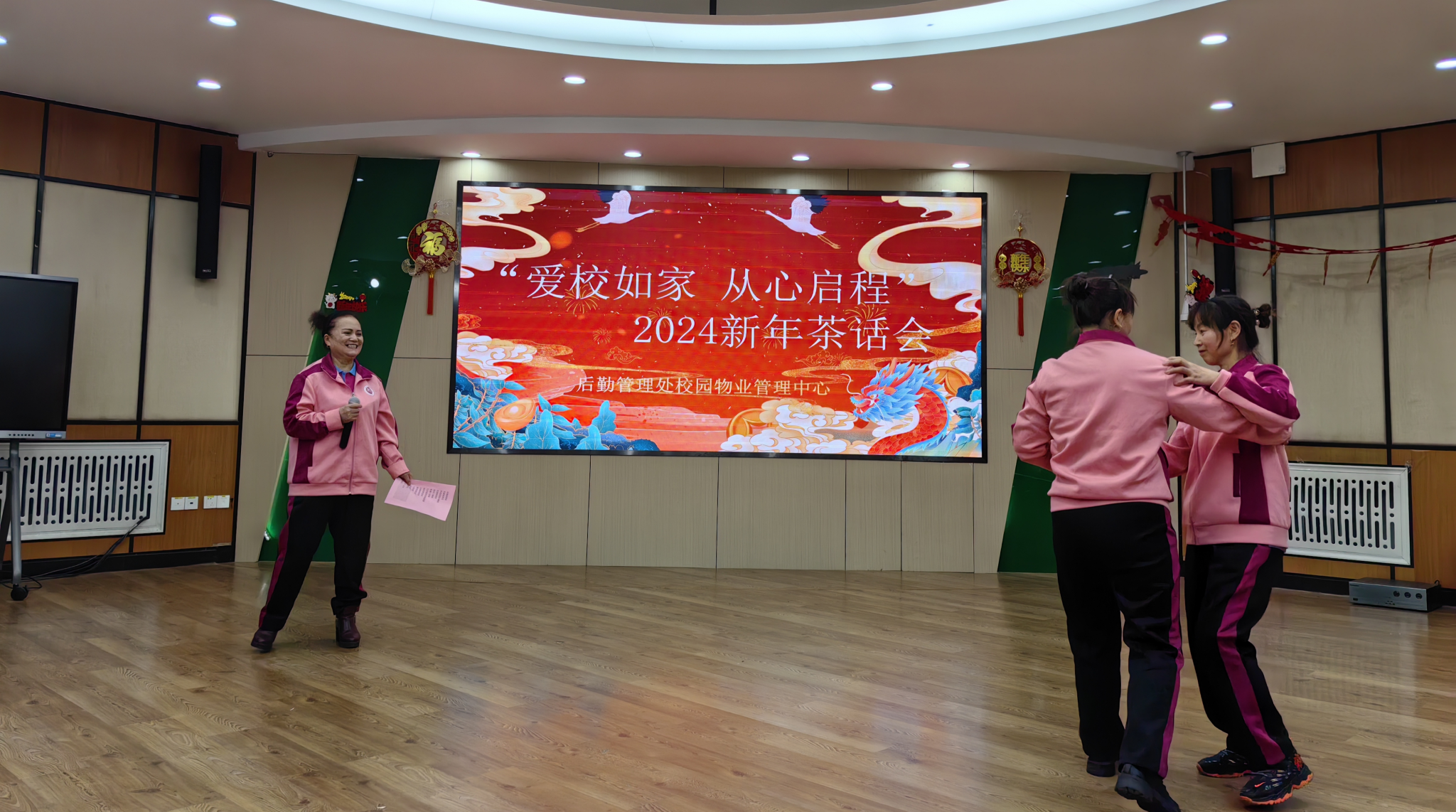 文艺汇演后的游戏环节,全体人员积极参与,热闹非凡。新的一年,校园物业管理中心将持续立足本职工作,发扬“校园主人翁”精神,爱岗敬业,爱校如家,以更加饱满的热情,更加优质的服务,在新起点上谱写新篇章,展现新作为。