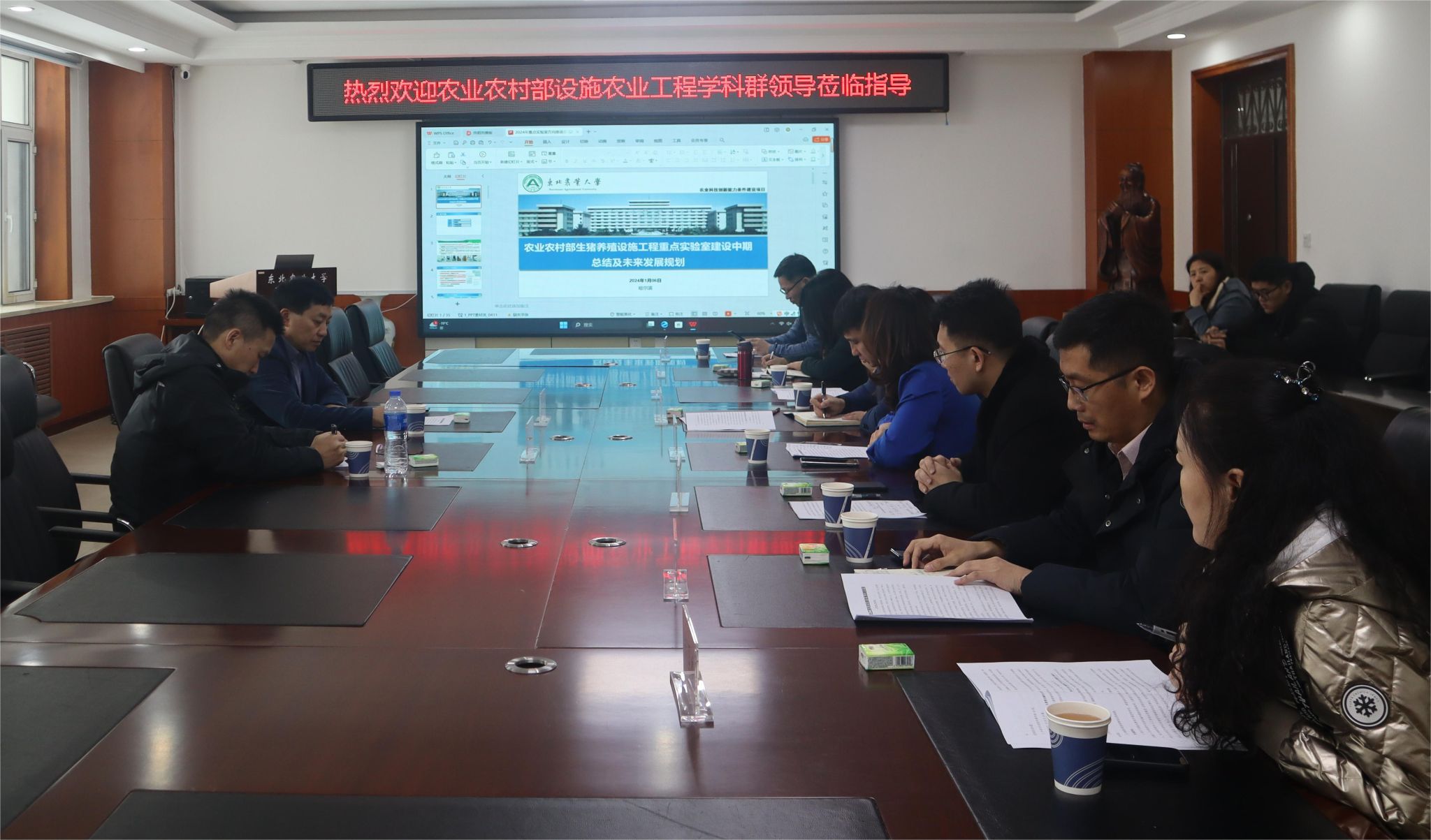 李保明教授对我校生猪养殖设施工程重点实验室平台建设及科研创新工作取得的成绩给予了肯定,他从国家对设施农业尤其是设施畜牧发展的政策导向、制约中国生猪养殖行业发展的“卡脖子”难题、以及东北寒区独特的气候和地域条件下生猪养殖企业发展的行业痛点进行了深入的剖析与指导,他指出,要充分发挥重点实验室在生猪养殖领域技术引领、人才培养、学术交流等方面的重要作用,要聚焦解决制约东北寒区养猪行业发展的关键问题,并以此为基础要面向全国生猪养殖行业提出设施农业工程解决方案。黄仕伟教授对重点实验室所做的“十五五”未来发展规划从方向、目标到要解决的技术难题等方面提出了宝贵建议。