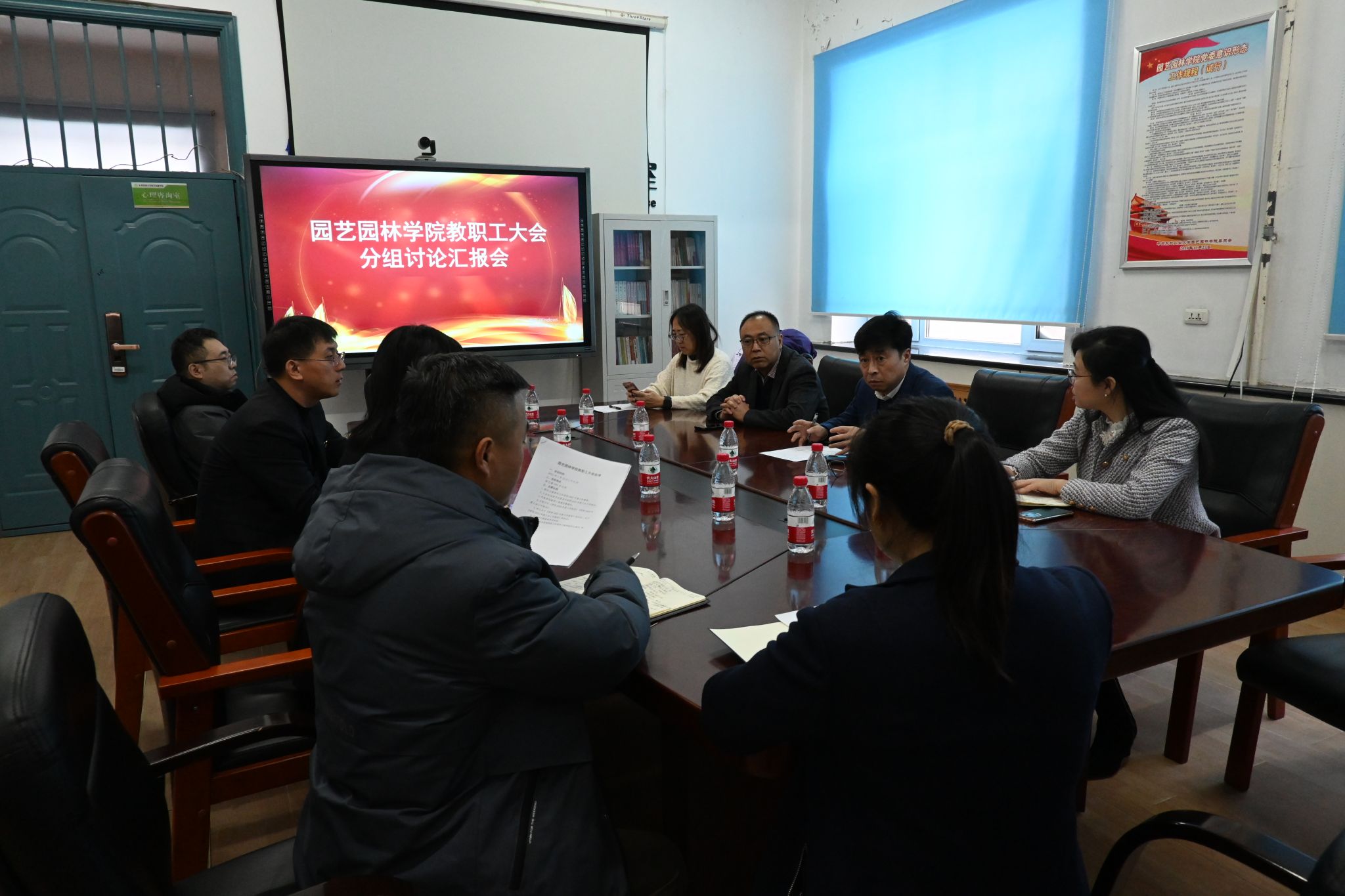 随后,会议还分组讨论了学院工作报告和学院工会工作报告,并提出意见建议。讨论结束后,学院领导班子在园艺楼226听取各小组负责人讨论情况汇报。