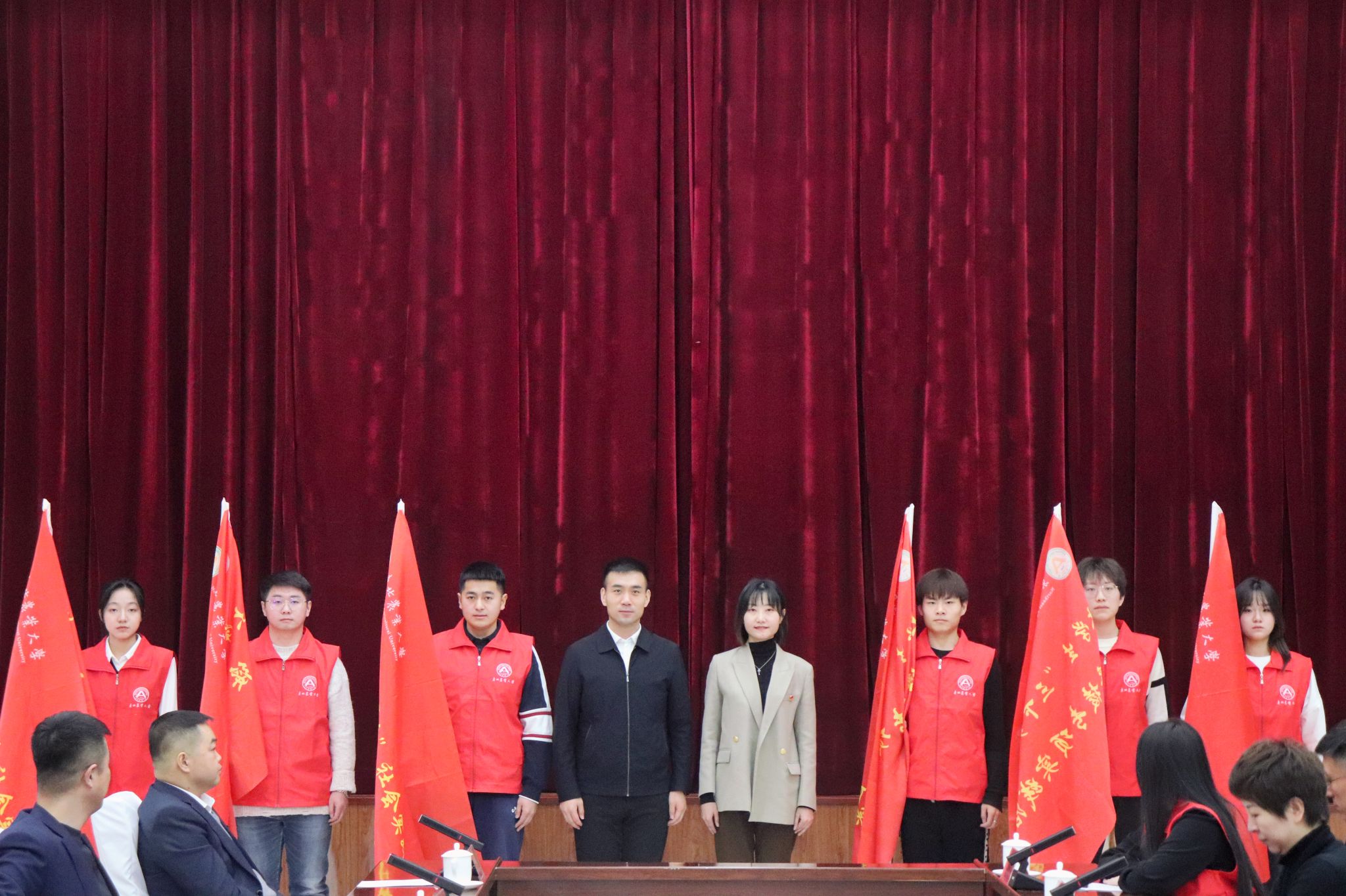 与会领导共同为2024年寒假大学生“三下乡”社会实践绥棱专项实践活动团队代表授旗。