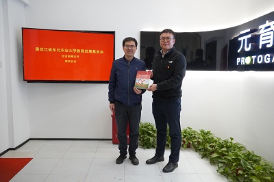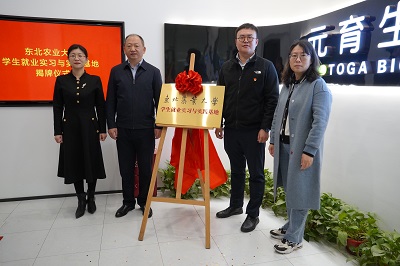 元育生物科技有限公司举行了“东北农业大学学生就业实习和实践基地” 揭牌仪式暨就业创业导师聘任仪式。元育生物科技有限公司创始人、生命科学学院校友肖亦博,运营中心总经理曹淑萍、应用开发总工程师李雁群、公共关系总监易帆及公司各部门负责人出席聘任仪式。施喜军和肖亦博为就业实习与实训基地揭牌。孙珠红向肖亦博颁发《东北农业大学就业创业导师聘书》。柏锡向肖亦博颁发《东北农业大学校友捐赠证书》。