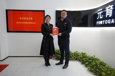 孙珠红向肖亦博颁发《东北农业大学就业创业导师聘书》