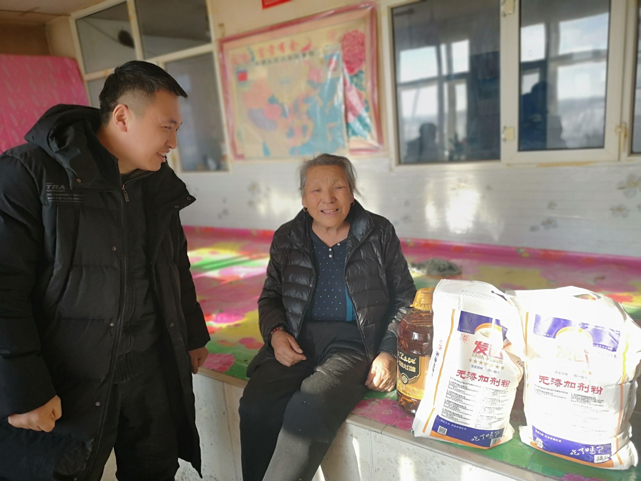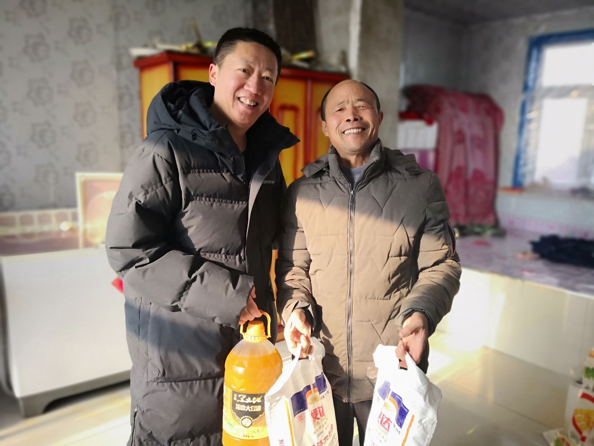 近日,东北农业大学驻甘南县东阳镇东发村工作队联合村两委共同开展“新春送暖”走访慰问活动,看望脱贫户、监测户、五保户、低保户和部分生活上需要帮扶的村民,为他们送去了衣物、白面、大米、食用油等生活物资并致以节日问候和美好祝愿。