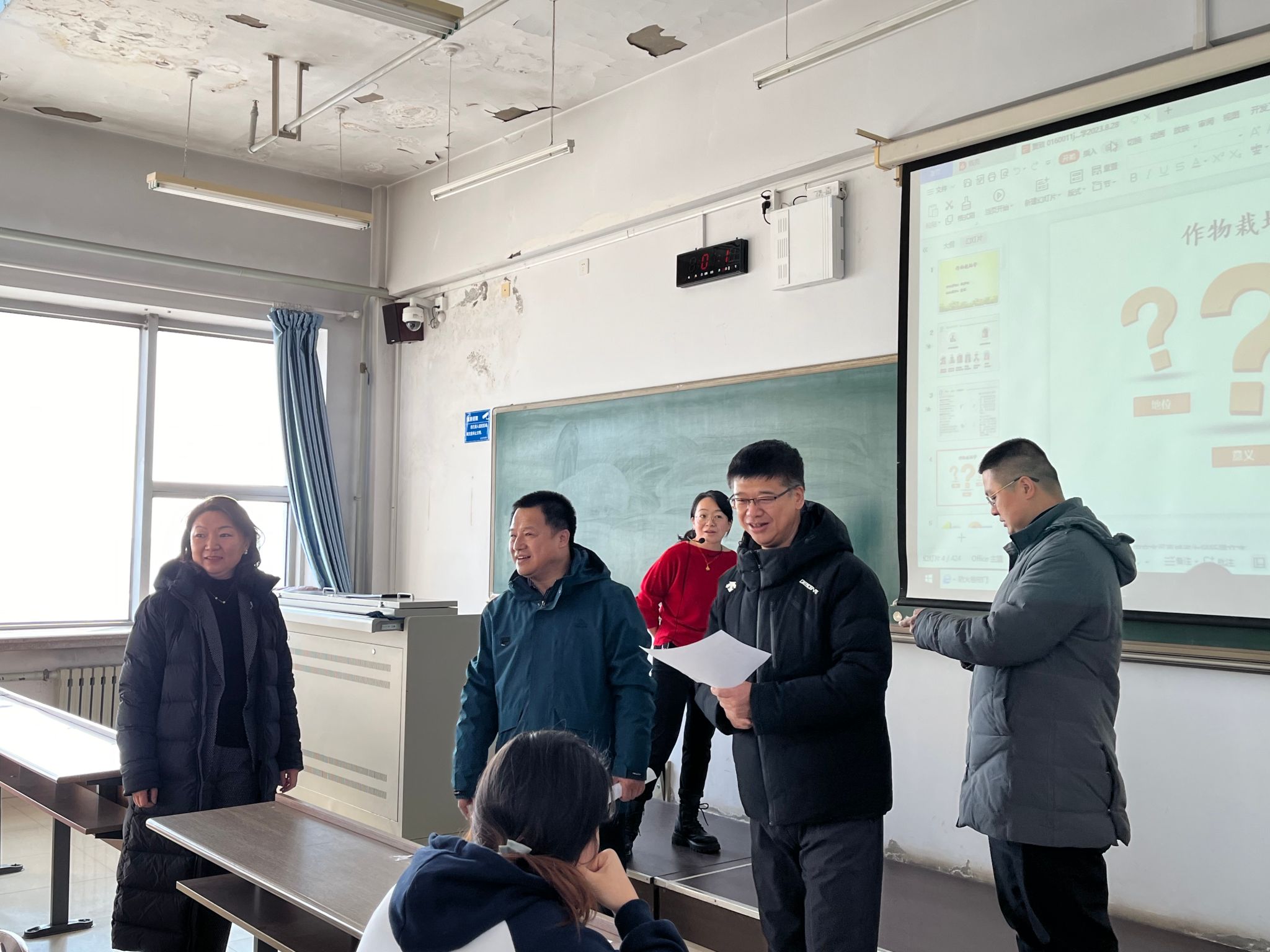 春风拂面,万象更新,新学期正式开始。为进一步加强农学院教学过程管理,规范教师教学行为,确保新学期教学工作平稳有序运行,根据学校《关于开展2023-2024学年第2学期开学初教学检查工作的通知》《关于做好新学期各级领导干部听课工作的通知》等文件,3月4日,农学院党委书记李晓书、院长陈庆山、党委副书记张华英、副处级辅导员李东组成检查小组,开展新学期教学检查工作。