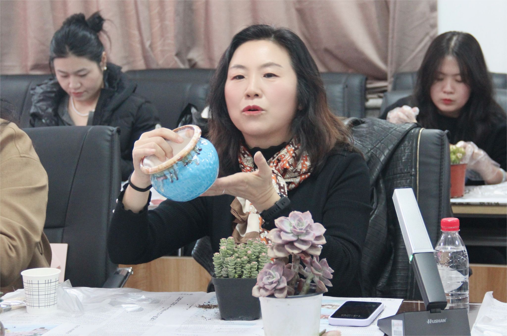为庆祝第114个“三八”国际劳动妇女节,丰富女教职工精神文化生活,激发艺术创新活力,提高生活情趣,3月6日,马克思主义学院工会在成栋楼1010会议室组织开展以“别样春天 悦享绿趣”为主题的多肉种植沙龙活动,特邀我校园艺专家樊金萍教授作题为《多肉植物盆栽技术》的专题讲座,学院全体女教工参加本次活动。活动由马克思主义学院副院长兼工会主席赵继颖主持。