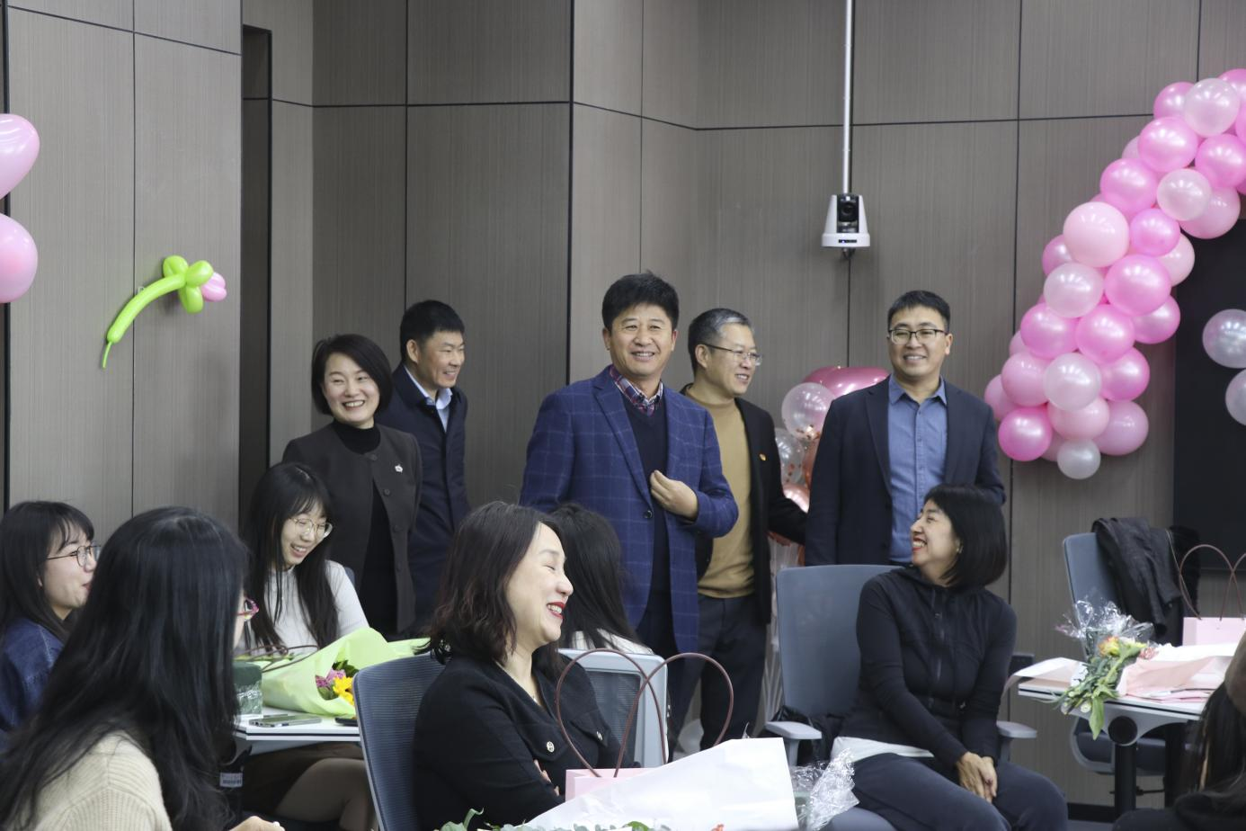 学院党委书记王洪亮向辛勤耕耘、默默奉献的在学院各个岗位的女教职工们致以节日的问候和美好的祝福,并表示女教师们在教育教学、科学研究、学科建设、社会服务等方面都取得了骄人的成绩,是学院的中坚力量,希望学院全体女教职工继续发扬爱岗敬业、与时俱进的精神,继续发挥“半边天”作用,始终爱校如家、以校为荣,在本职工作岗位上做出更大的成绩。