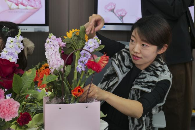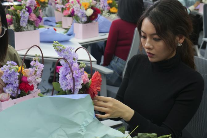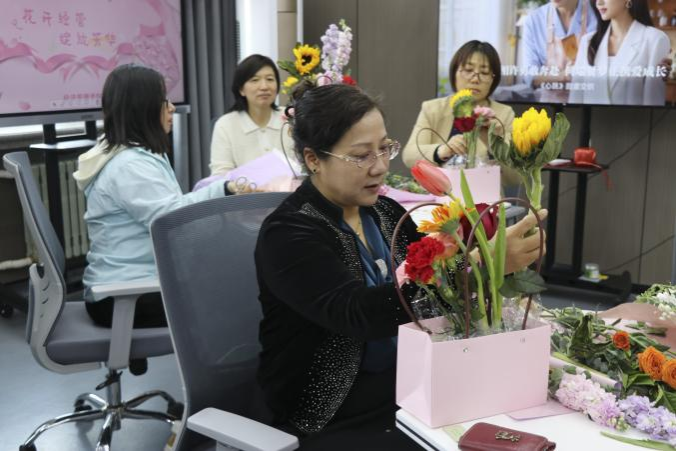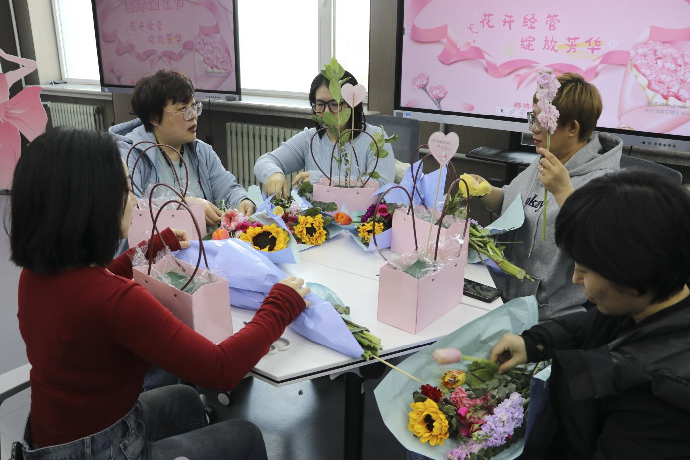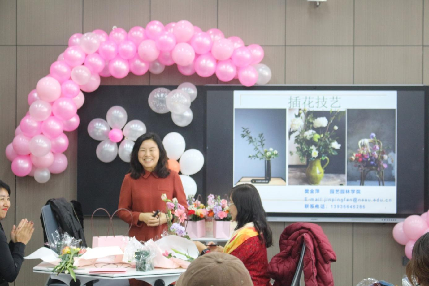 为扎实开展“爱校如家,争做主人翁”系列活动,全面培养师生员工的爱校荣校意识,激发广大师生员工当好主人翁、建功新时代的干事创业精神,提升教职工参与感、获得感和幸福感,展现女教职工在学校事业发展中的良好精神风貌,在第114个“三八”国际劳动妇女节来临之际,经济管理学院工会开展以“花开经营、绽放芳华”为主题的手工插花活动,邀请园艺园林学院园林系樊金萍教授现场为大家进行讲解和指导。学院领导班子全体成员及全体女教职工参加活动。活动由学院党委副书记、工会主席高天琦主持。