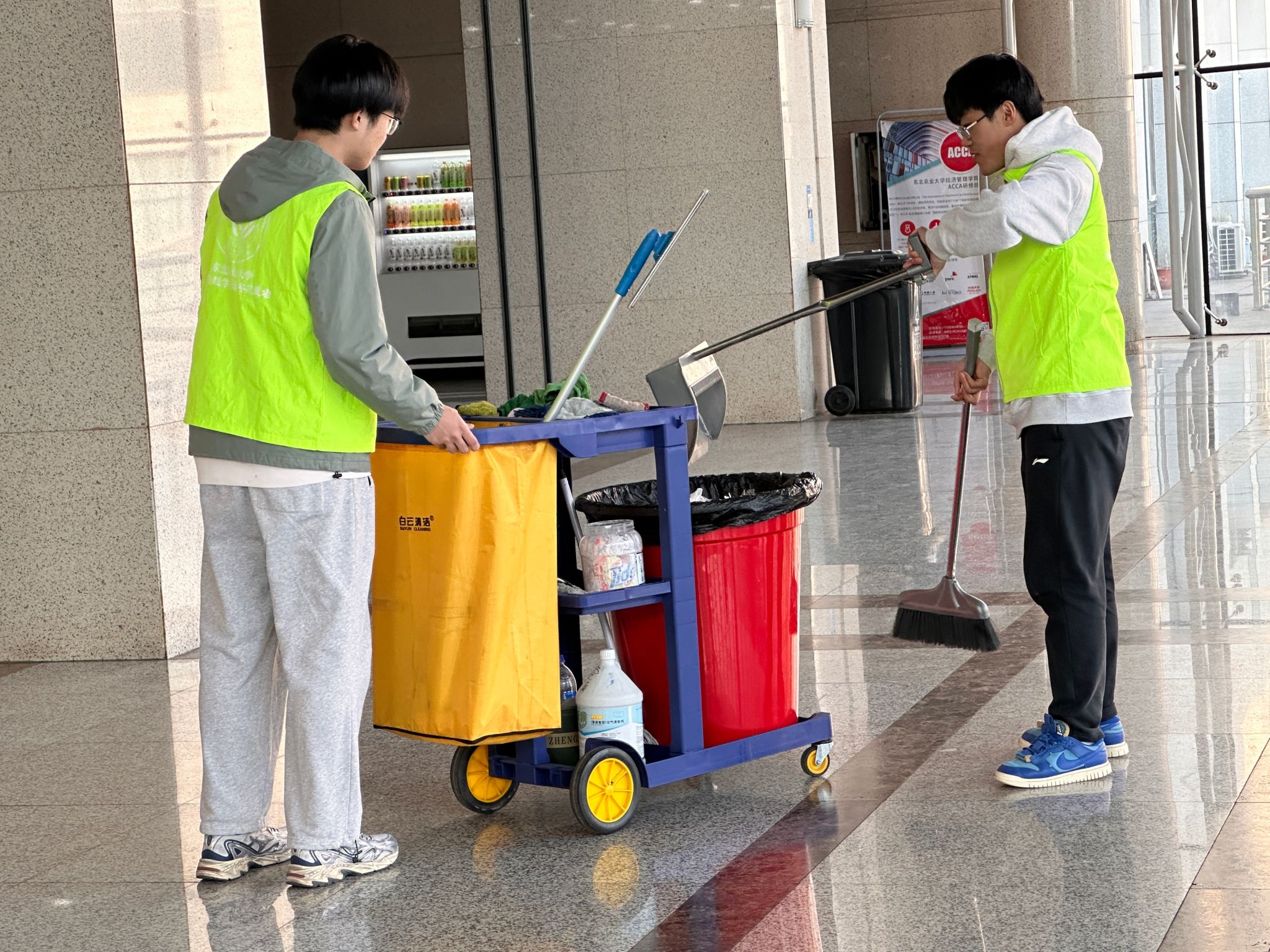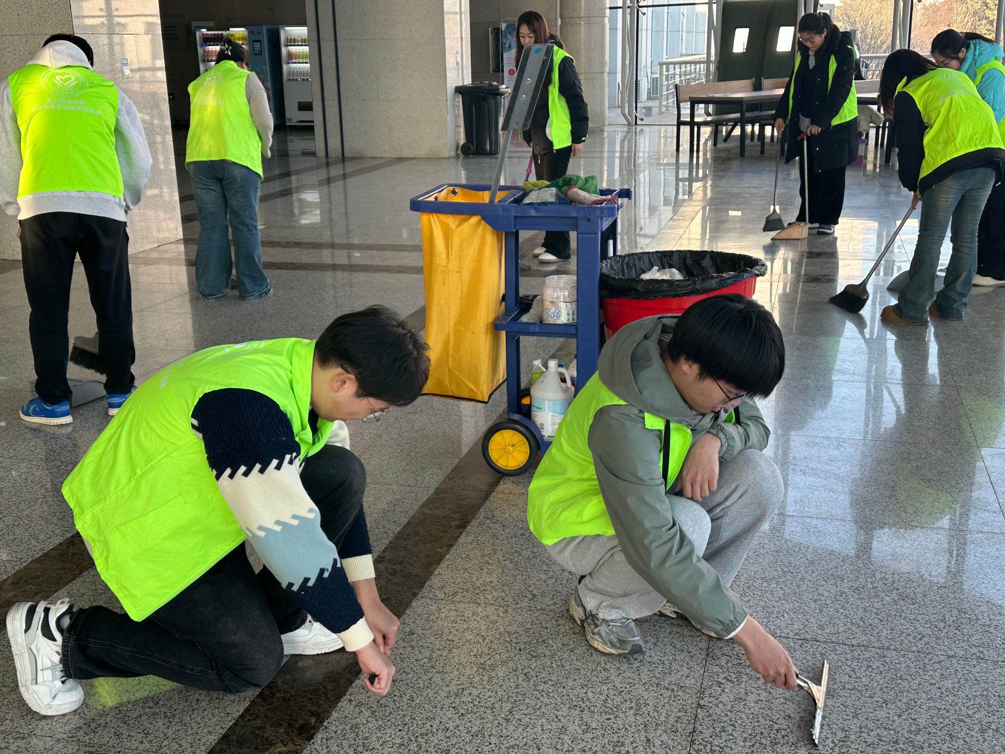在活动过程中,志愿者们展现出了高度的专业性和责任心。他们明确分工,相互协作,手持扫帚、拖把、抹布等工具,认真清洁每一个角落,力求使成栋楼内环境焕然一新。同学们以高标准、严要求、高质量的态度完成了此次清扫任务,充分展现了新时代青年的风采和担当。