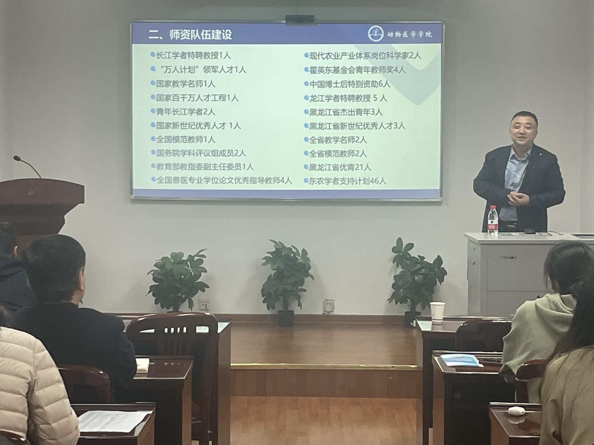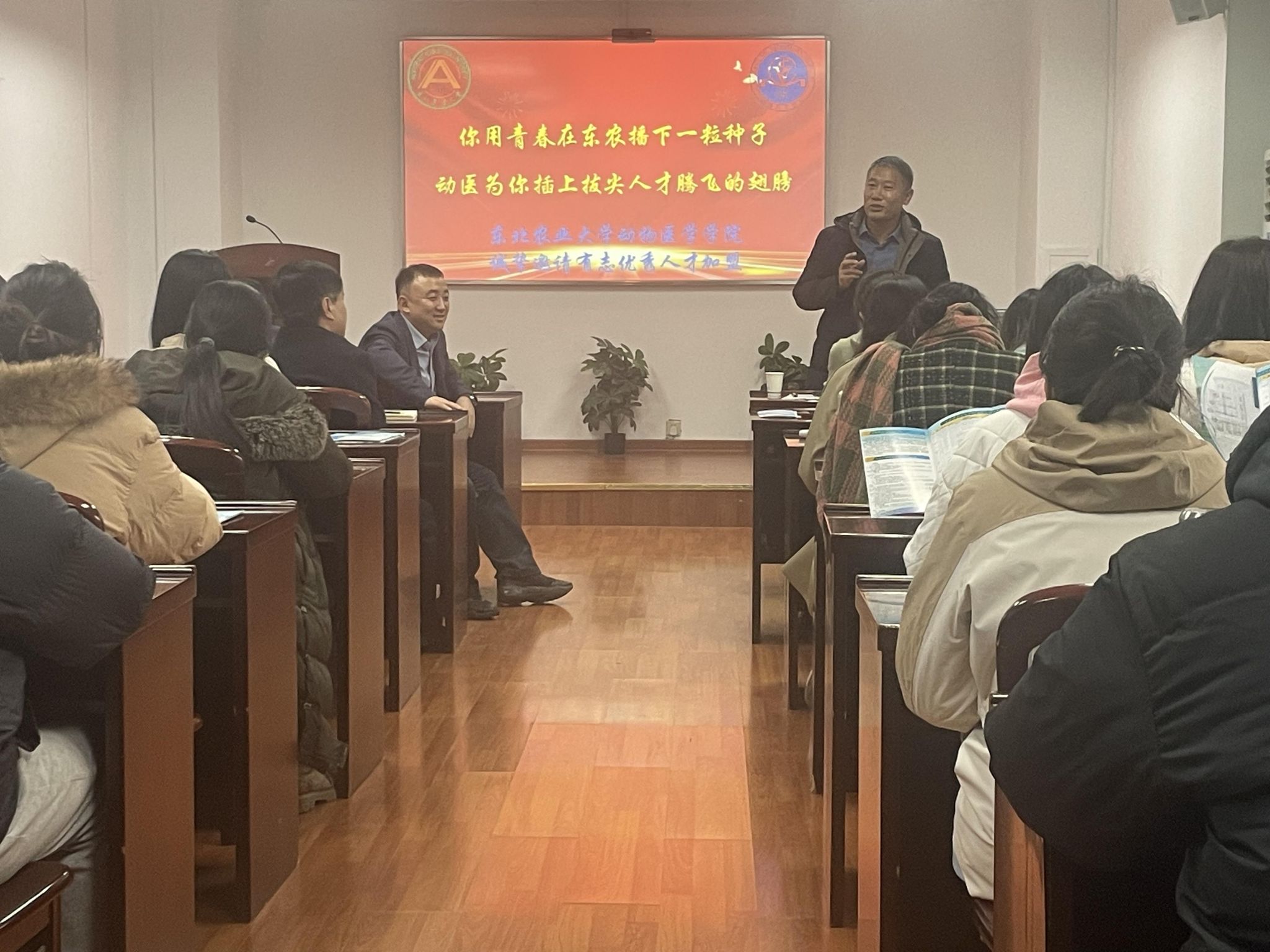 会后,南京农业大学动物医学院安排了人才招聘宣讲专场,该校即将毕业的博士研究生参加了此次宣讲会。张铁、李金龙介绍了东北农业大学动物医学学院的概况,期望更多优秀人才加入学院。
